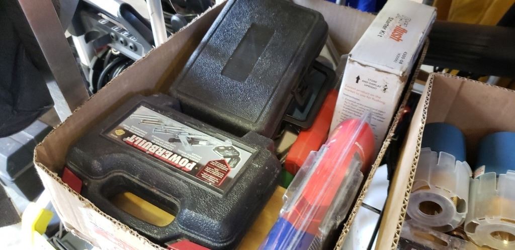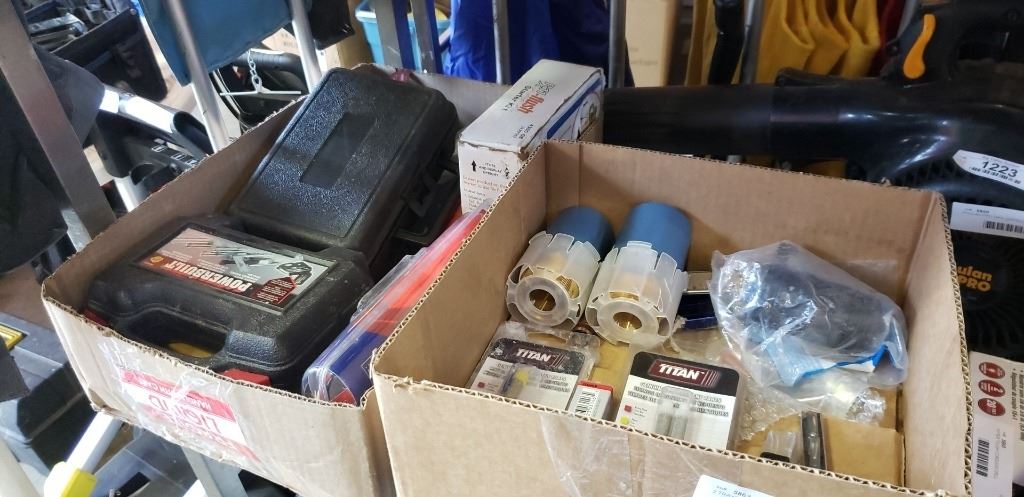 2 TRAYS OF TOOLS, NEW LARGE TAPS, ETC