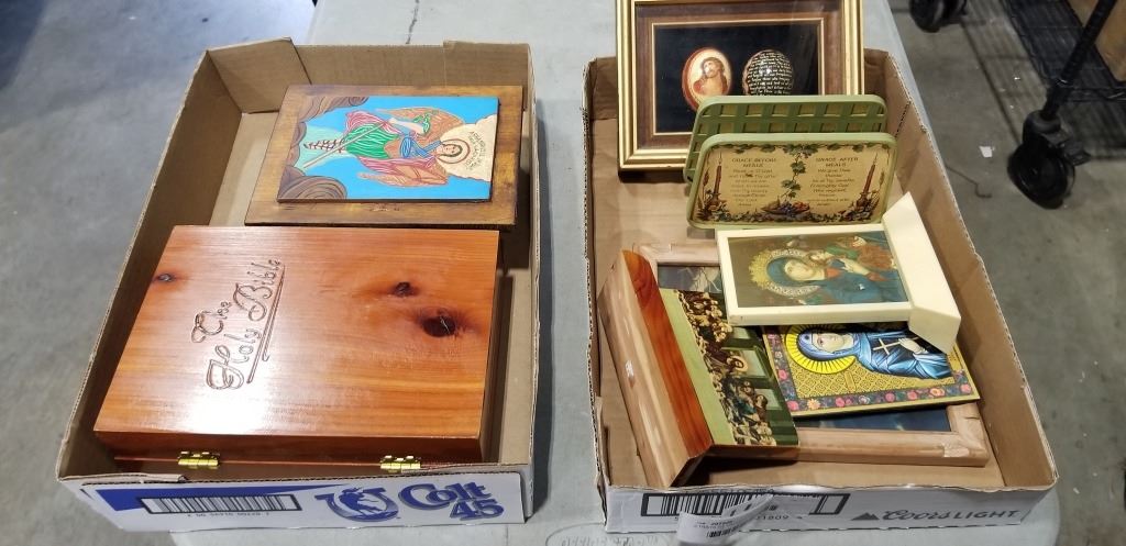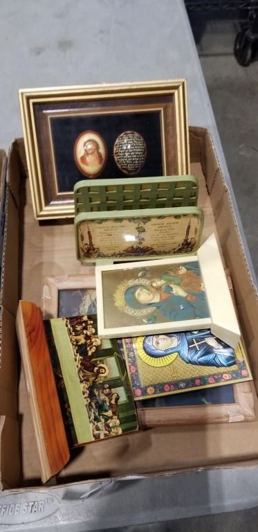 2 TRAYS OF VINTAGE RELIGIOUS COLLECTIBLES
