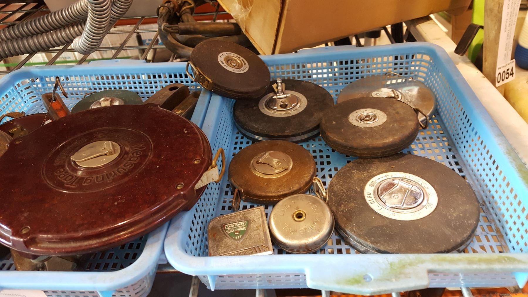 2 TRAYS OF VINTAGE TAPE MEASURES AND MONKEY WRENCHES