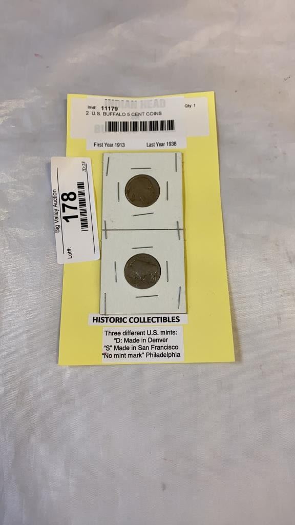 2 U.S. BUFFALO 5 CENT COINS