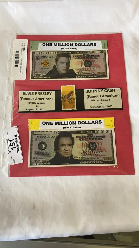 2 US 1 MILLION DOLLAR NOTES - ELVIS AND JOHNNY CASH