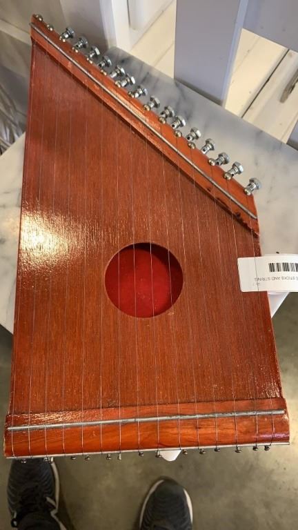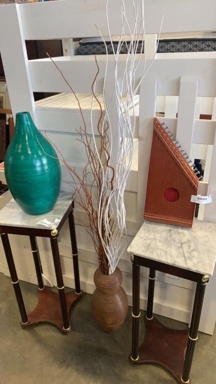 2 VASES, DECORATIVE STICKS AND STRING INSTRUMENTS
