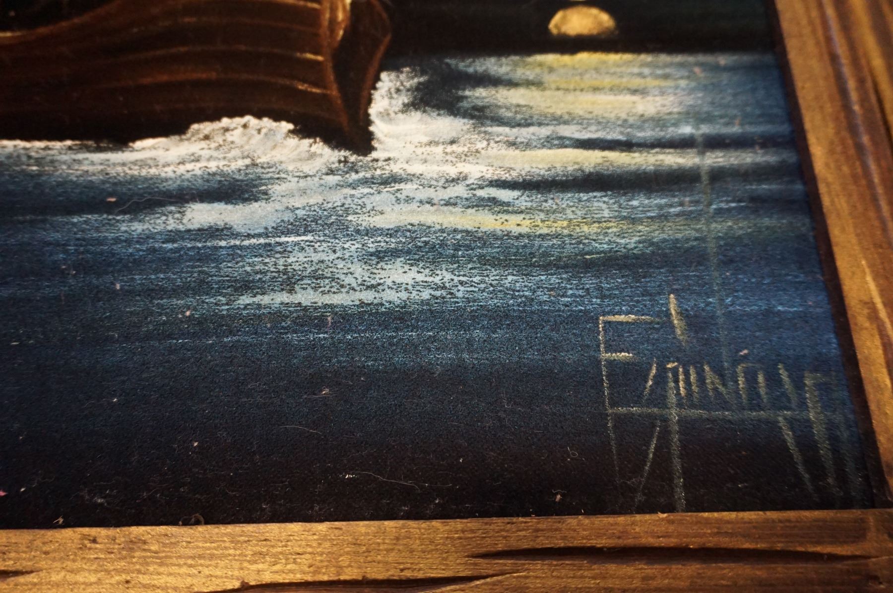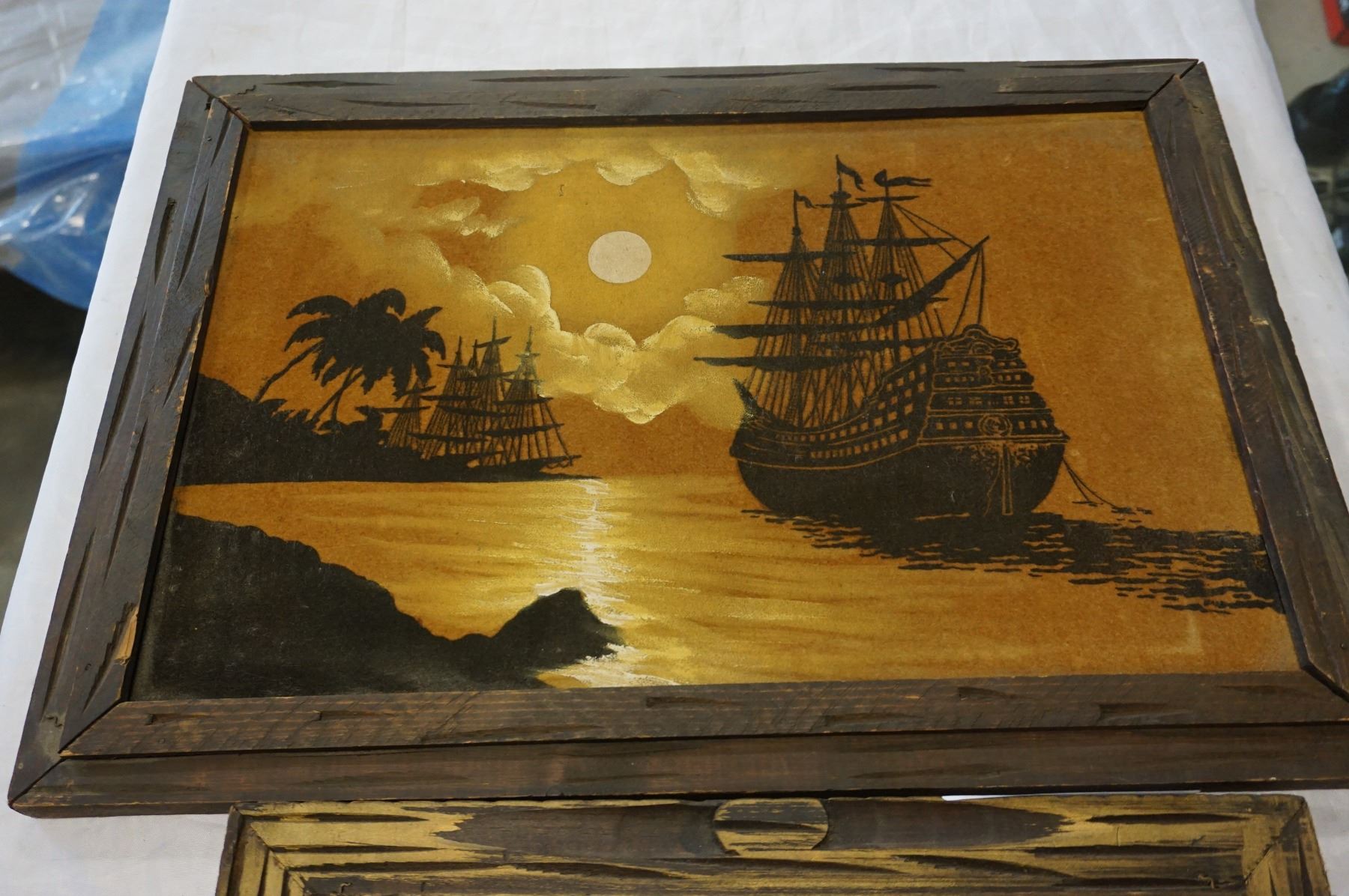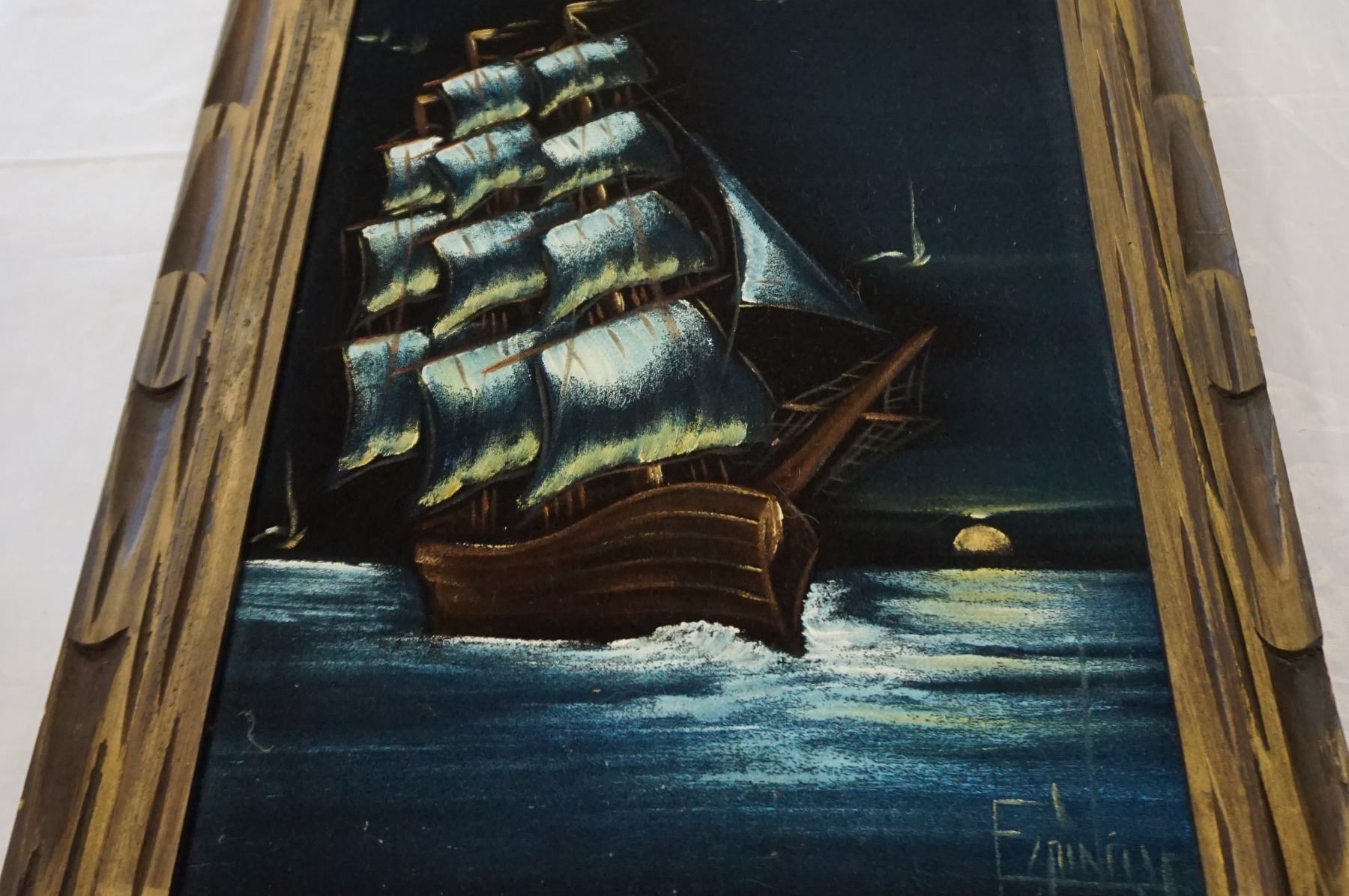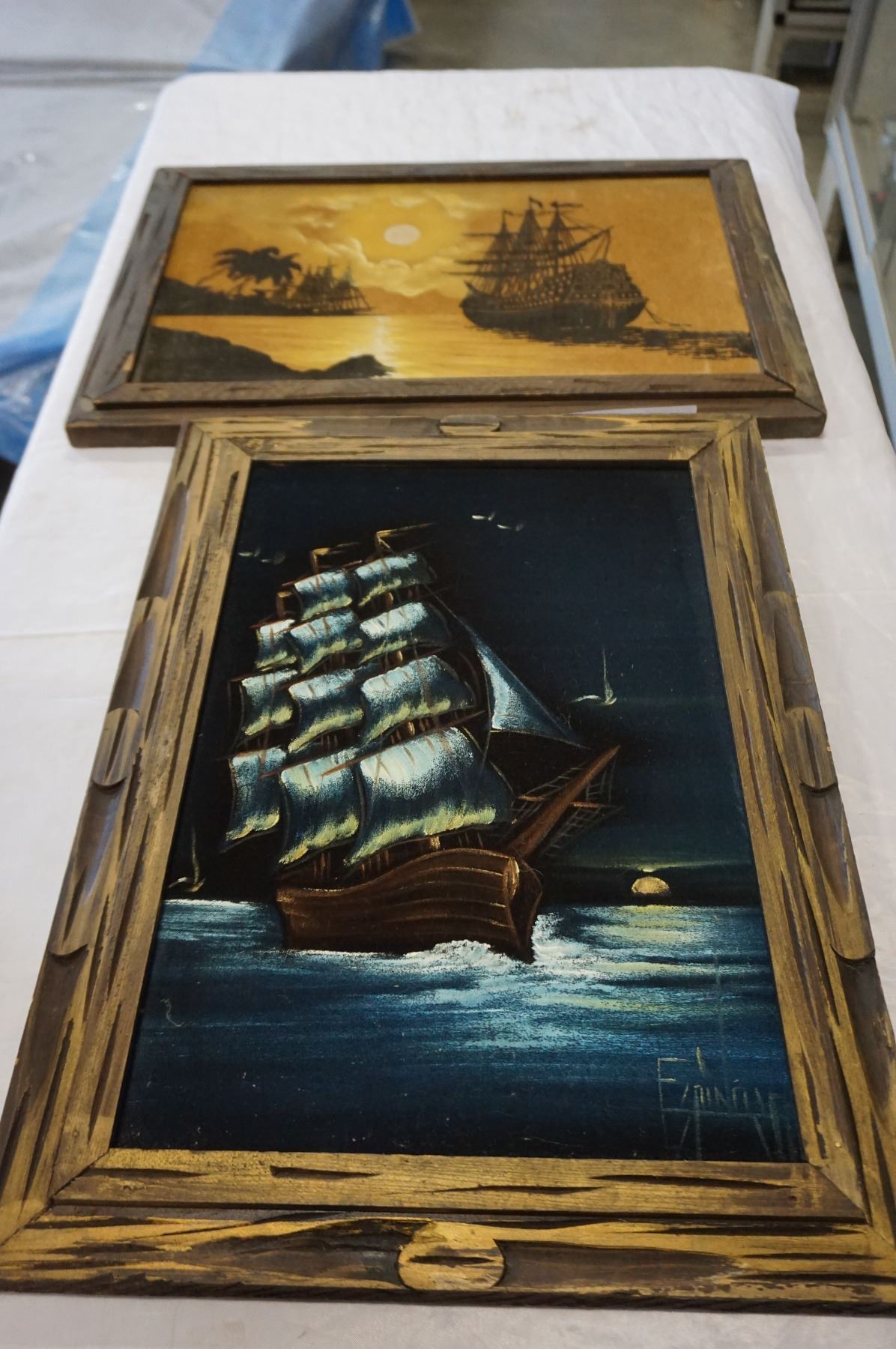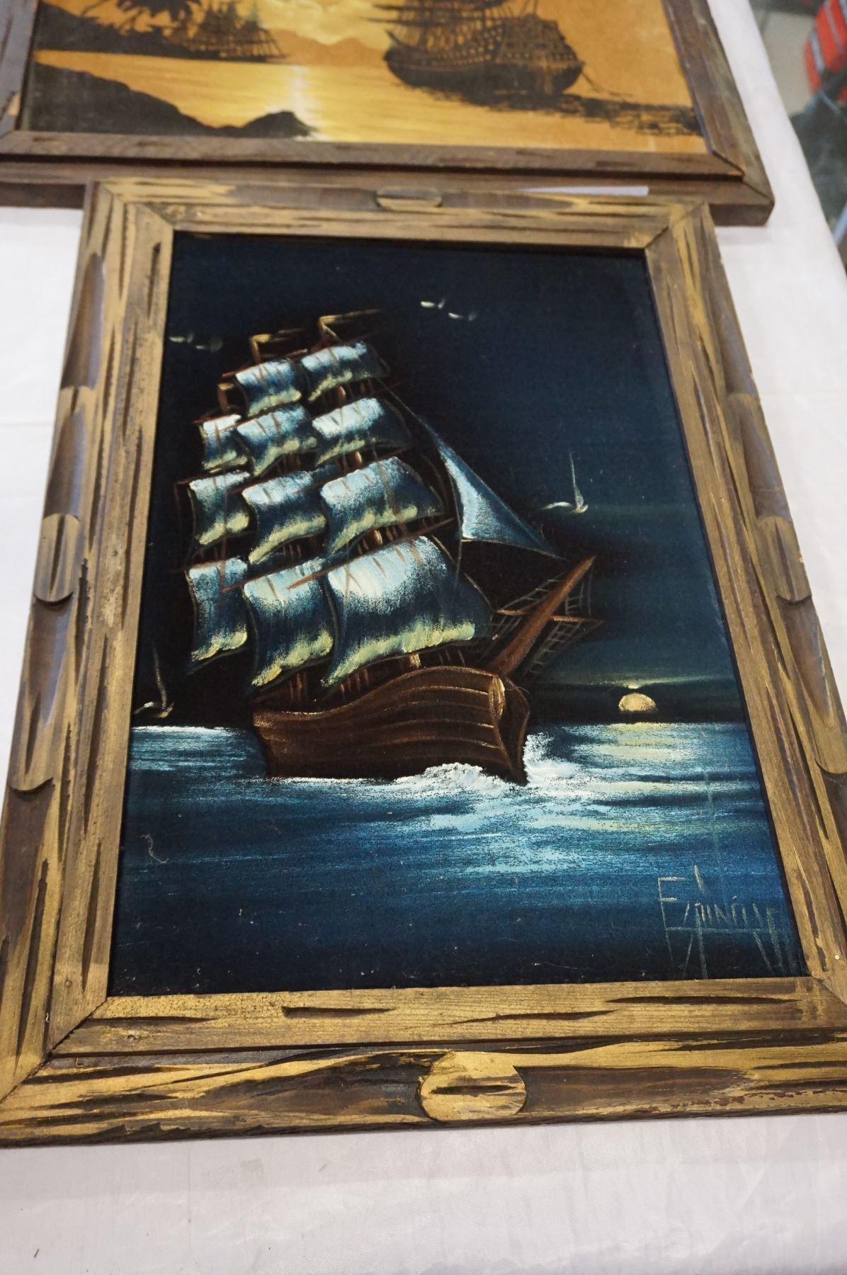 2 VELVET SHIP PAINTINGS