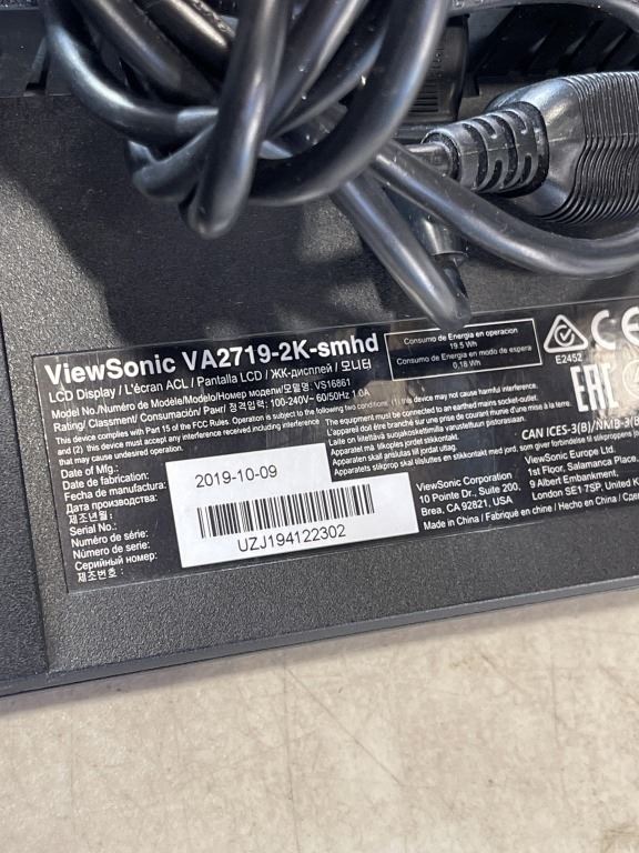 2 VIEW SONIC 27 INCH MONITORS, BOTH WORKING , NO STANDS