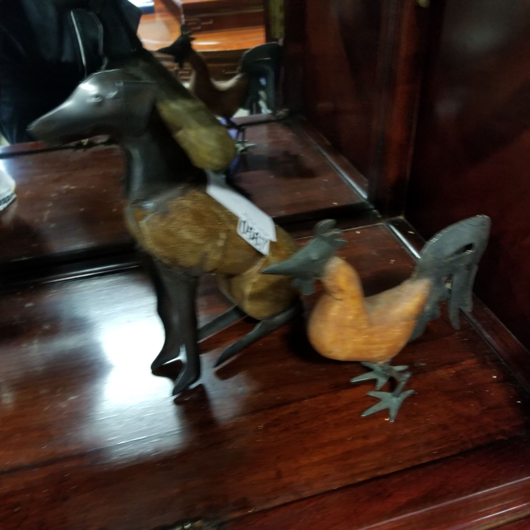 2 VINTAGE FOLK ART FIGURES - DOG AND CHICKEN
