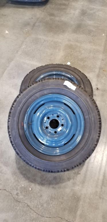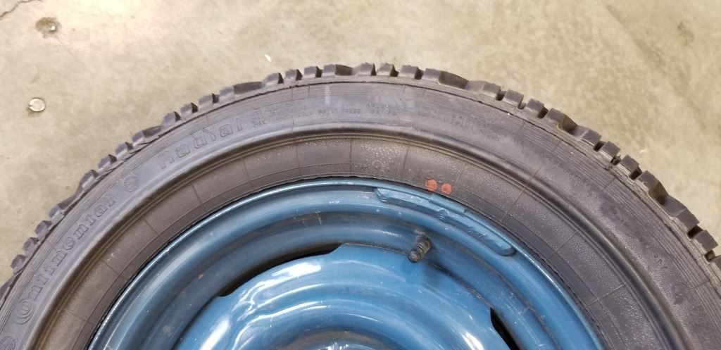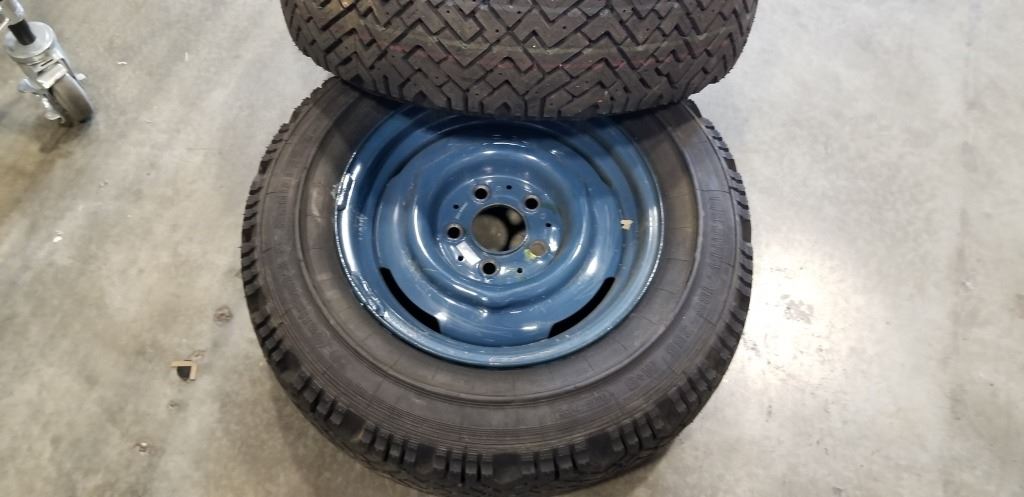 2 VINTAGE GERMAN CONTINENTAL RADIAL TIRES ON 5 BOLT RIMS, 185 / SR14 / 185-355 M+S, LIKE NEW