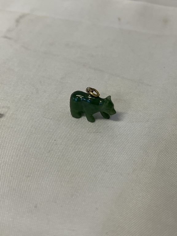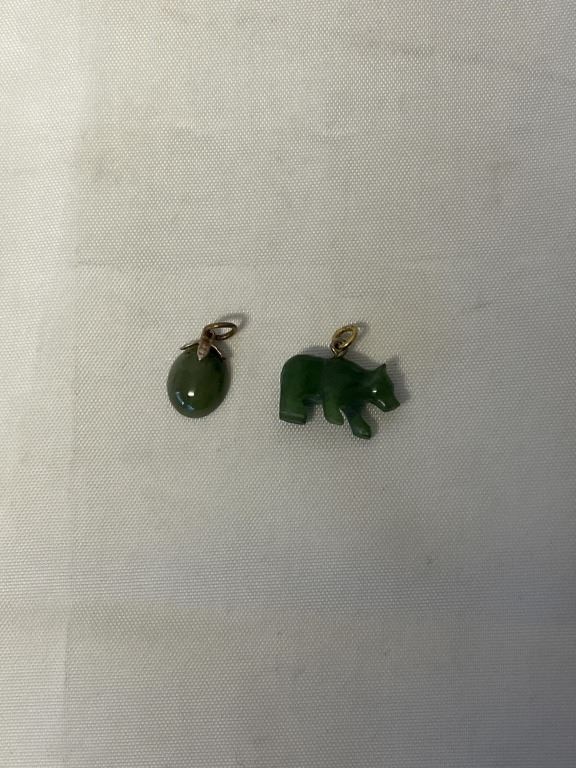 2 VINTAGE GREEN BC JADE CARVED PENDANTS OR CHARMS
