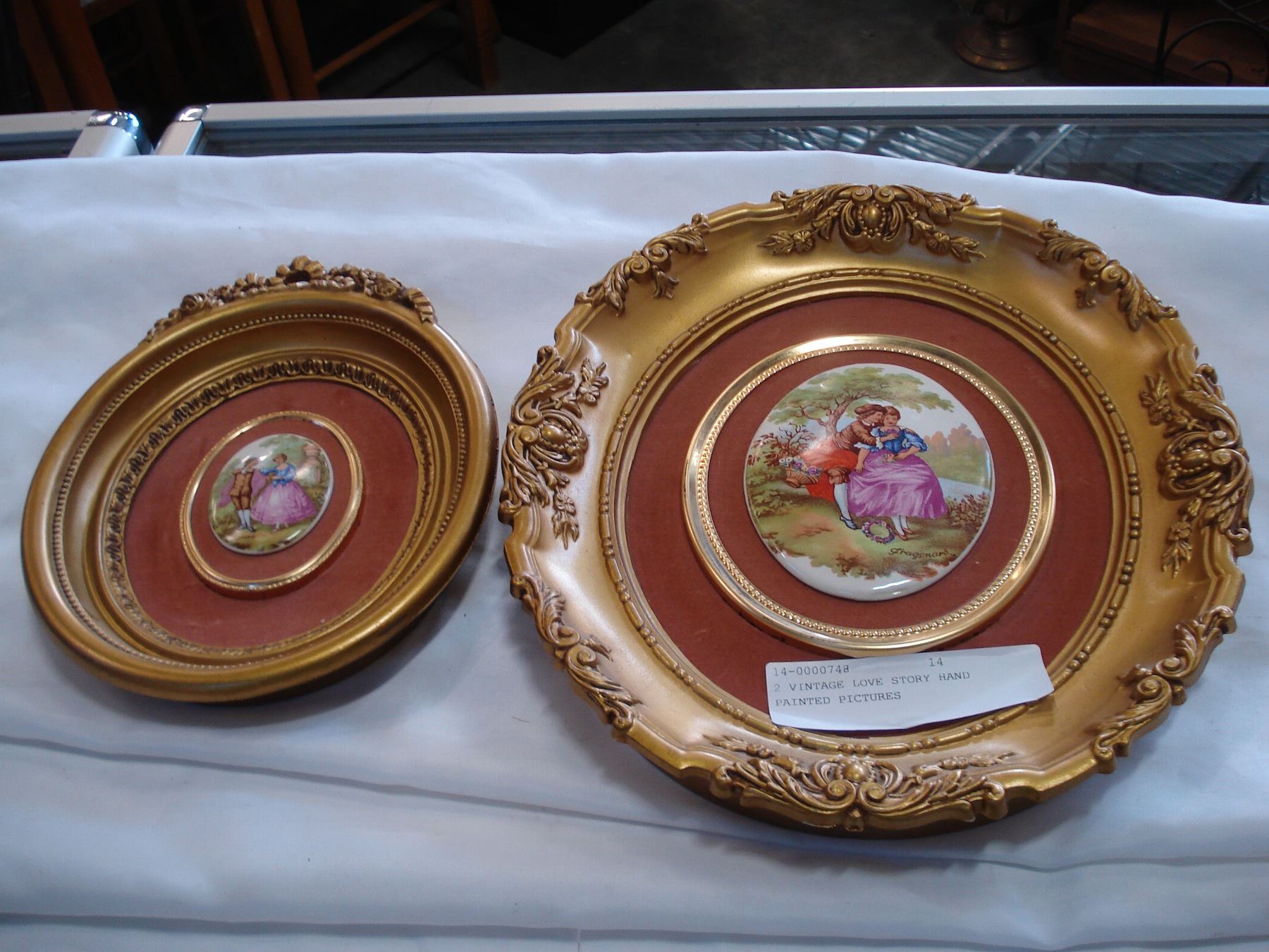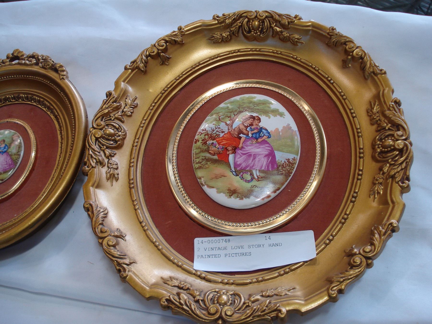 2 VINTAGE LOVE STORY HAND PAINTED PICTURES
