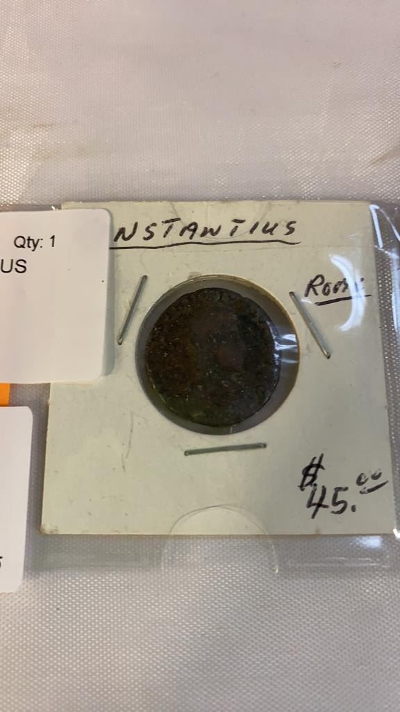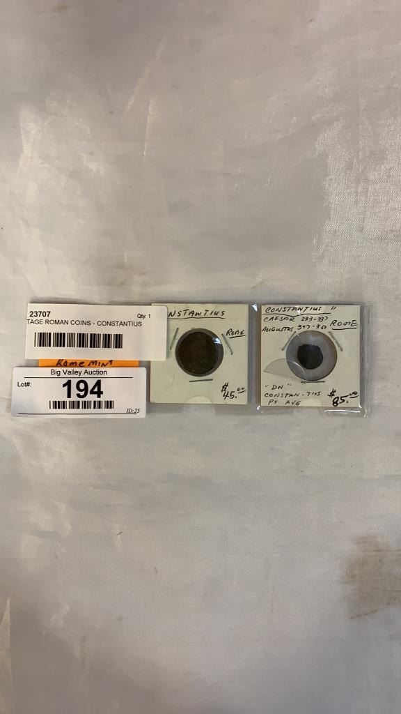 2 VINTAGE ROMAN COINS - CONSTANTIUS AND CONSTANTIUS II - VALUE $130