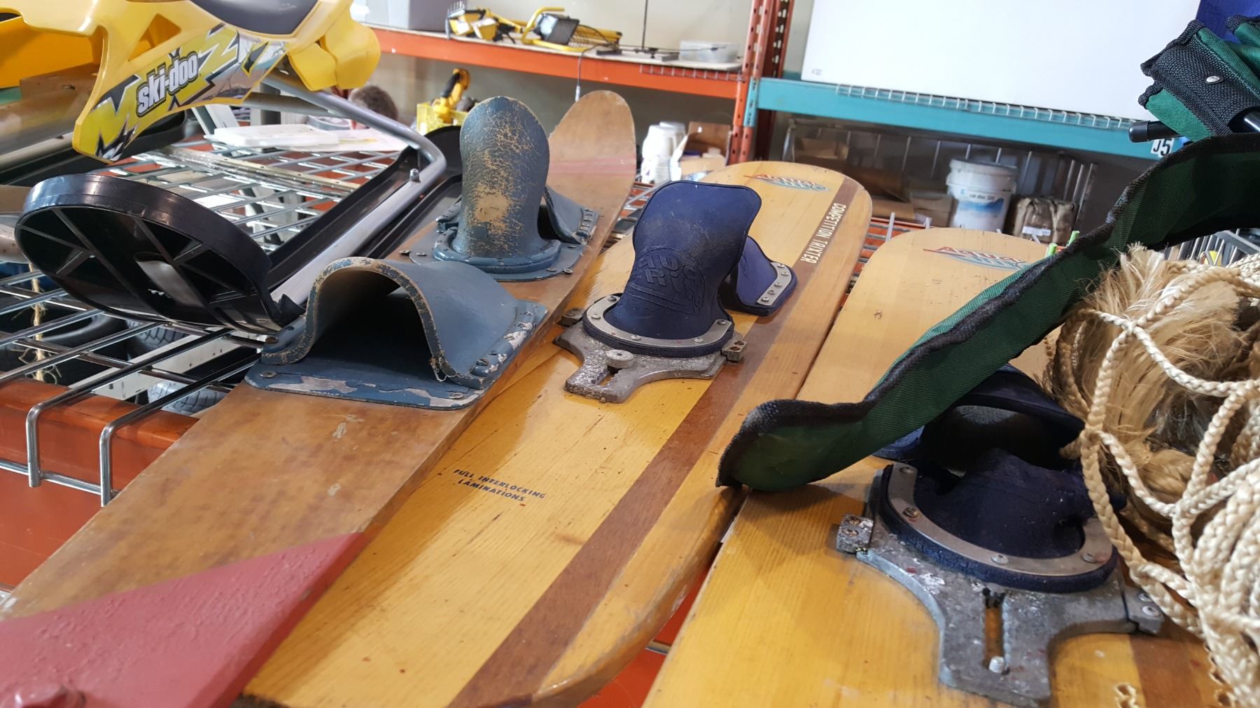 2 VINTAGE WATER SKIS AND CUSTOM CRIB BOARD