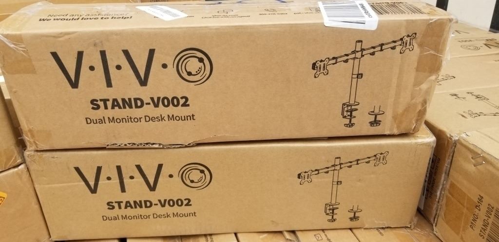 2 VIVO DUAL DESK MOUNTS, AND 2 VIVO SINGLE DESK MOUNTS