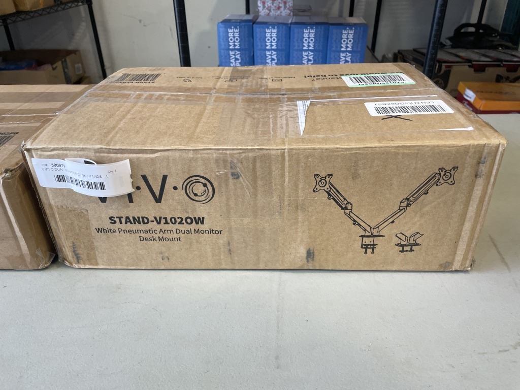 2 VIVO DUAL MONITOR DESK STANDS - 1 FIXED, 1 PNEUMATIC