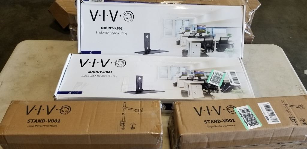 2 VIVO SINGLE MONITOR DESK MOUNTS AND 2 KEYBOARD TRAYS