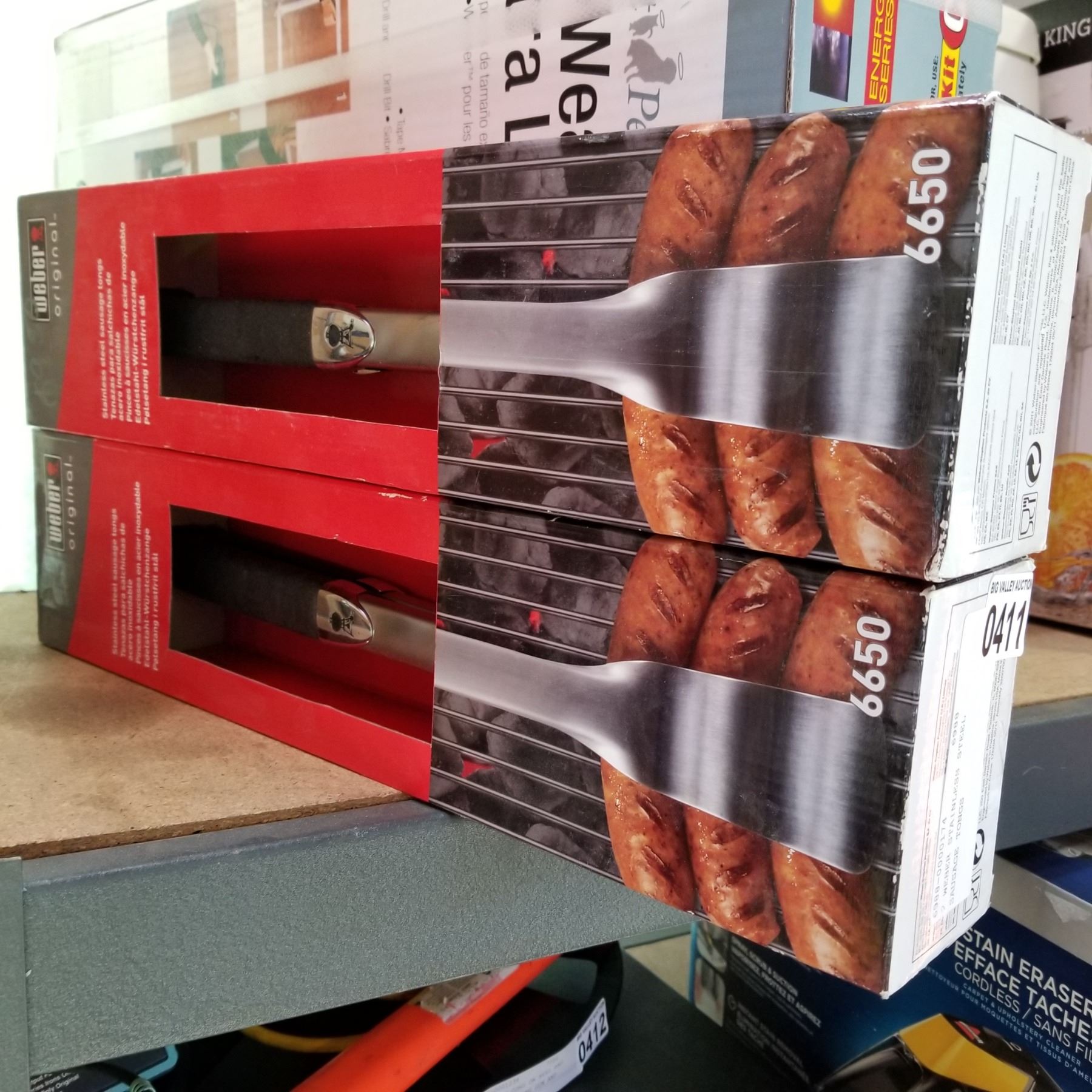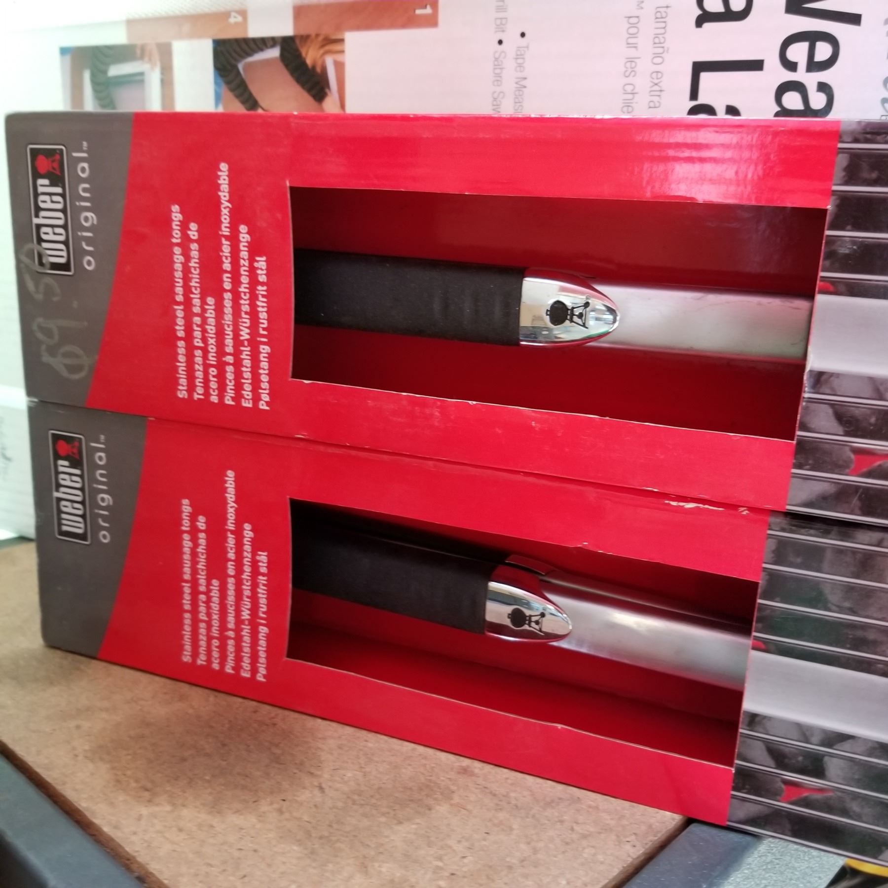 2 WEBER STAINLESS STEEL SAUSAGE TONGS