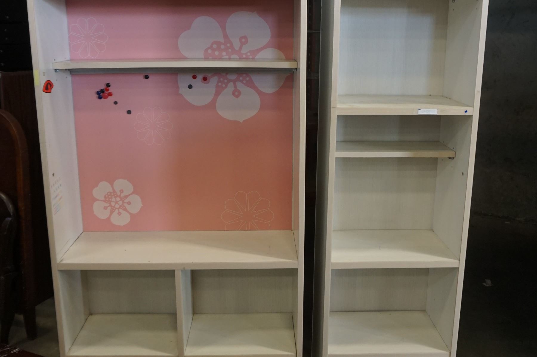 2 WHITE BEDROOM SHELVES 6-1/2 FT TALL