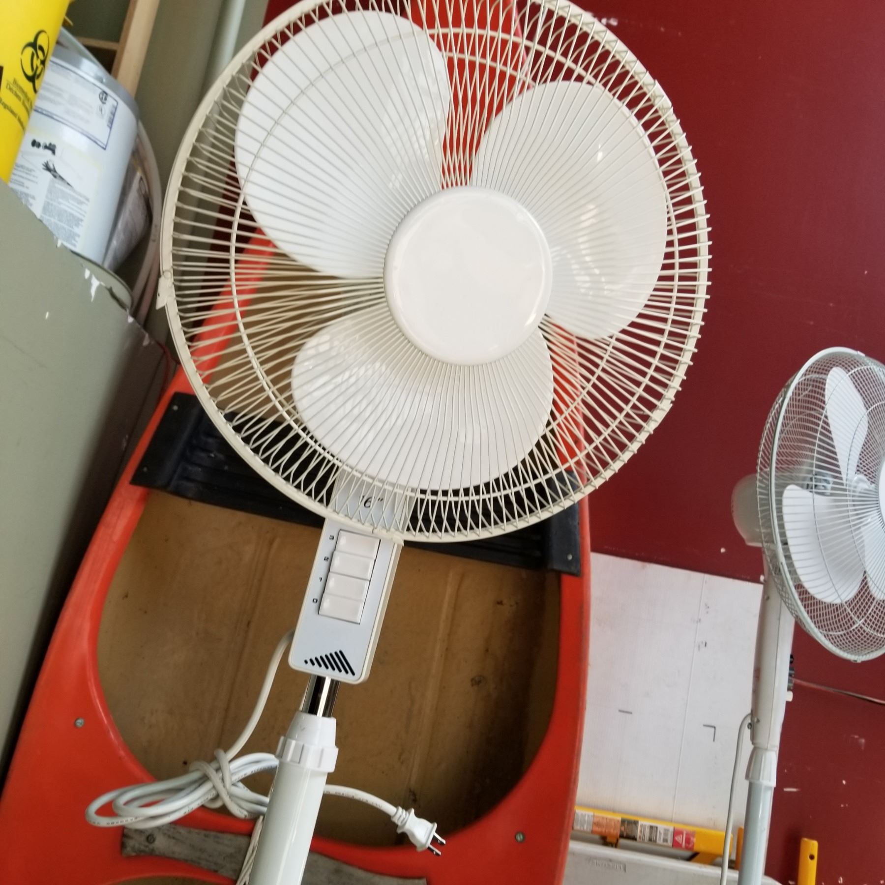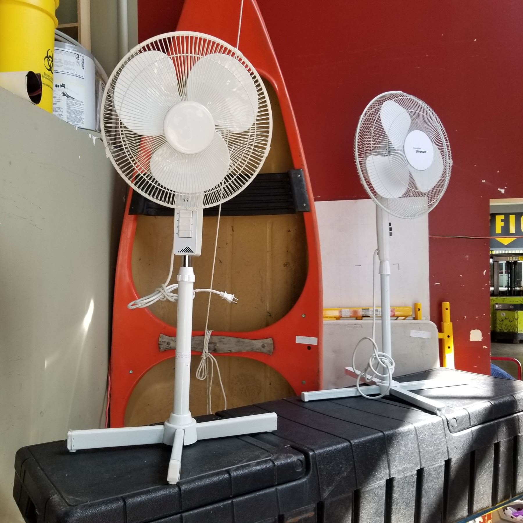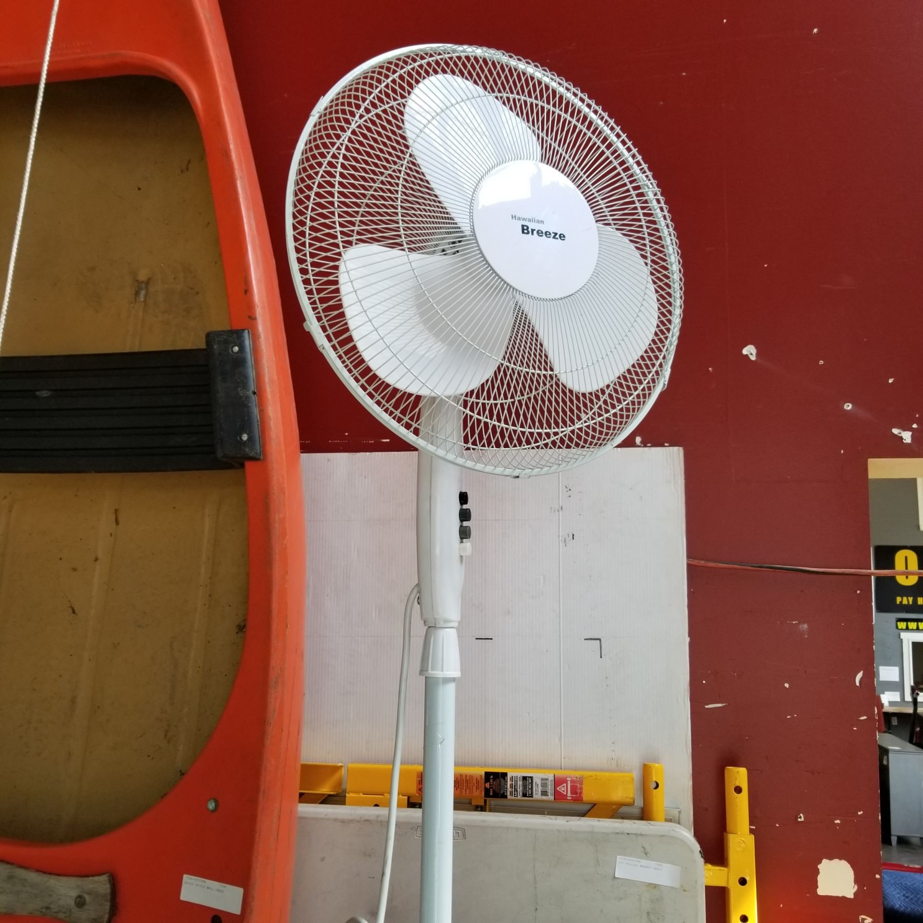 2 WHITE FLOOR FANS HAWIIAN BREEZE AND 16" FAN BOTH WORKING