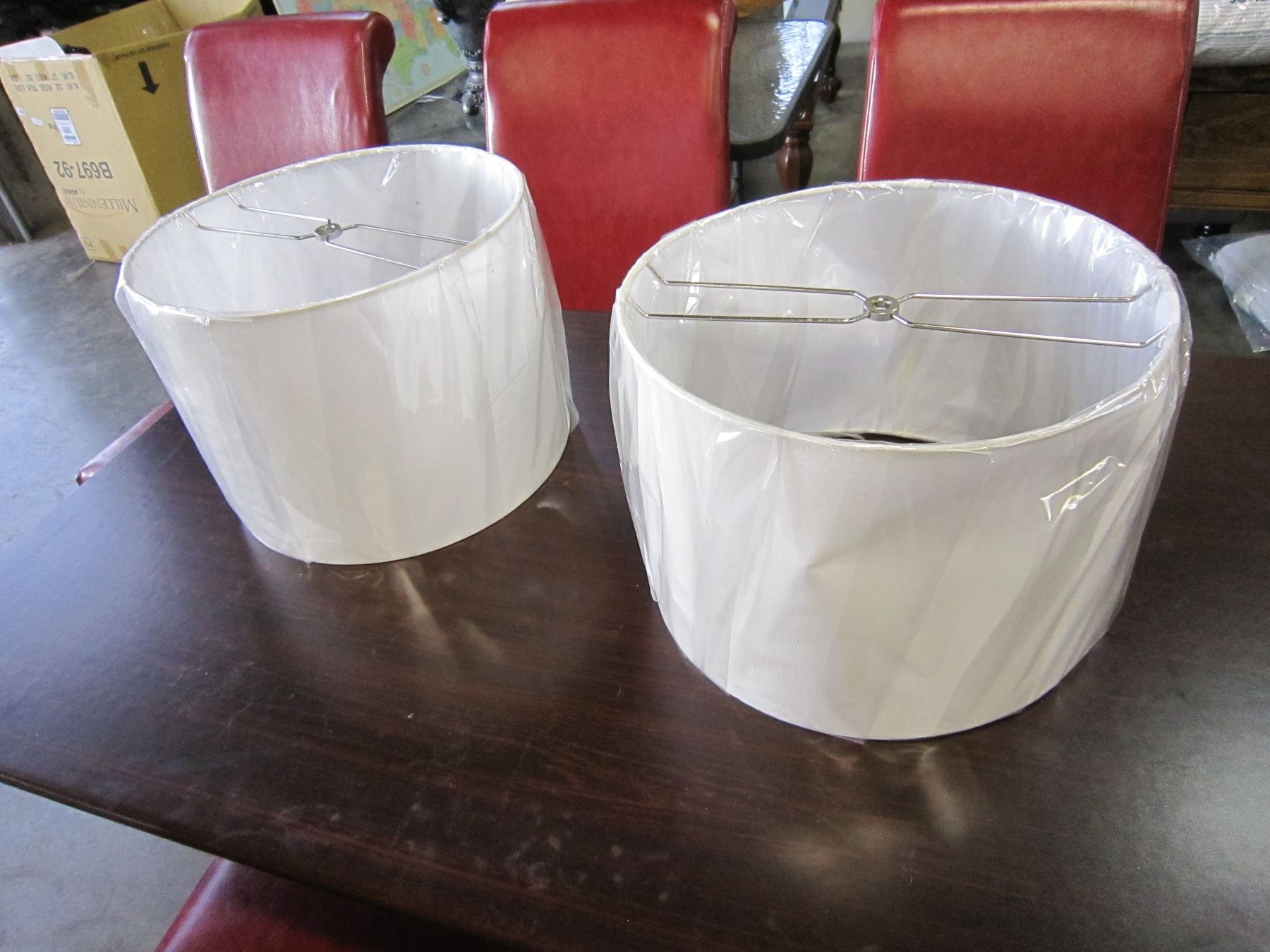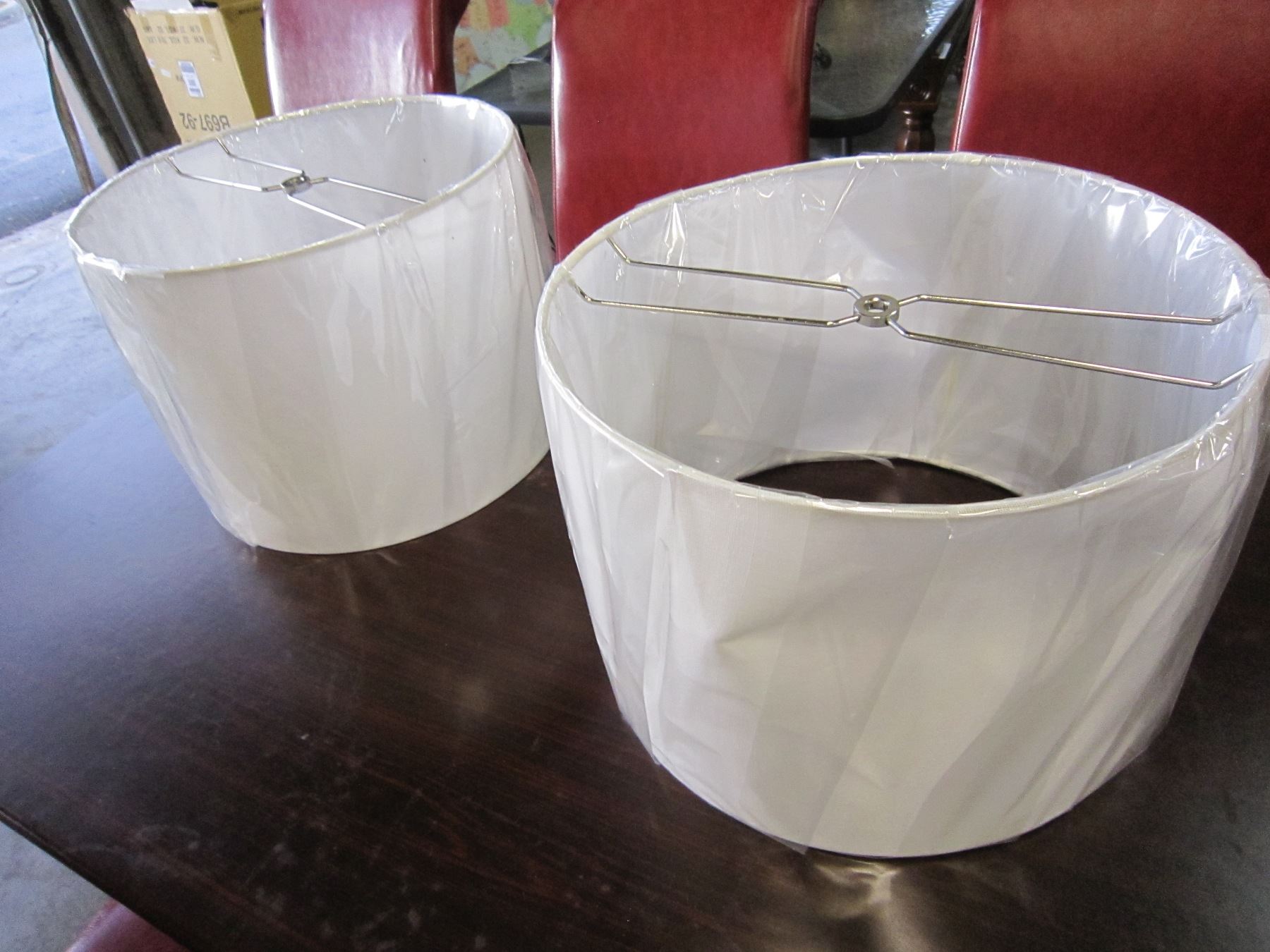 2 WHITE ROUND METAL FRAMED LAMP SHADES