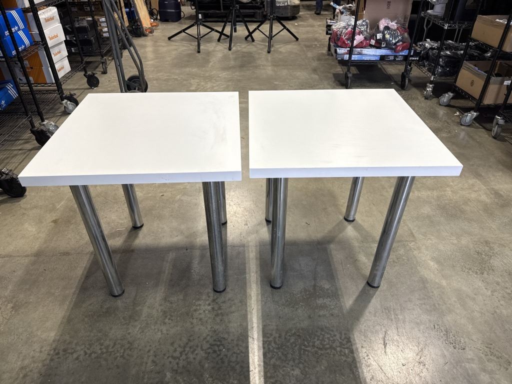 2 WHITWE 28 X 28 TABES WITH CHROME LEGS