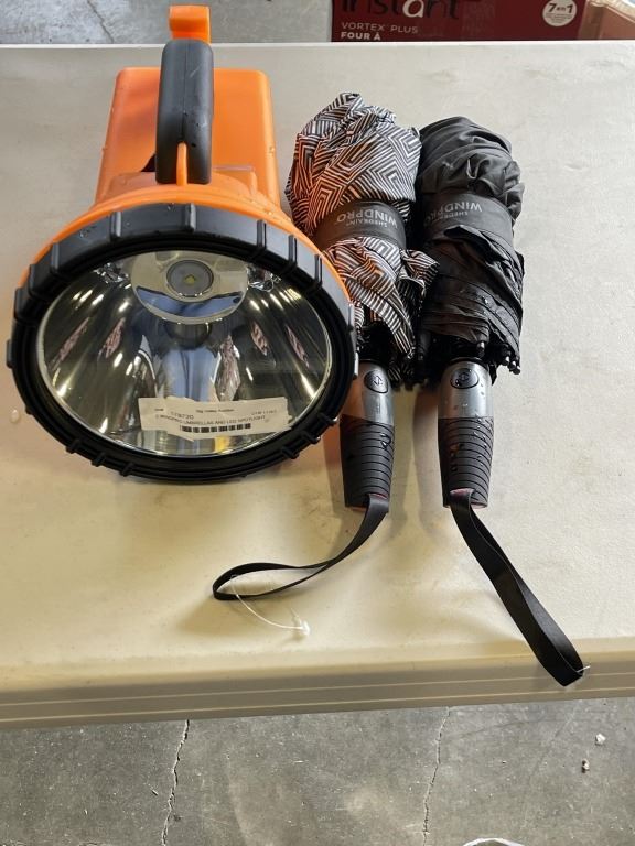 2 WINDPRO UMBRELLAS AND LED SPOTLIGHT