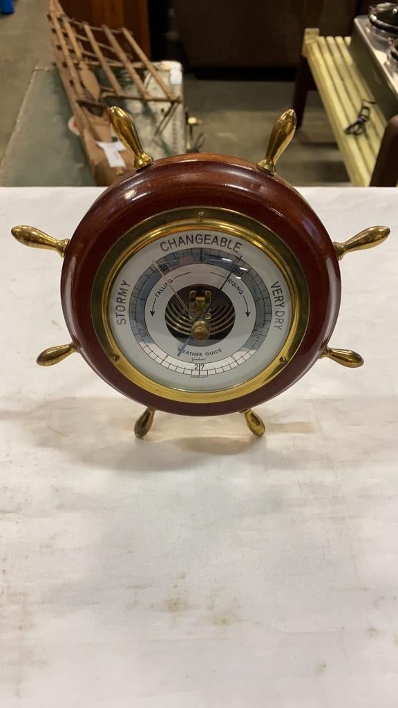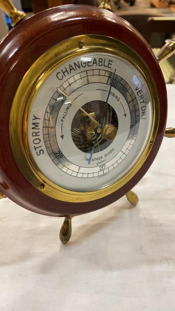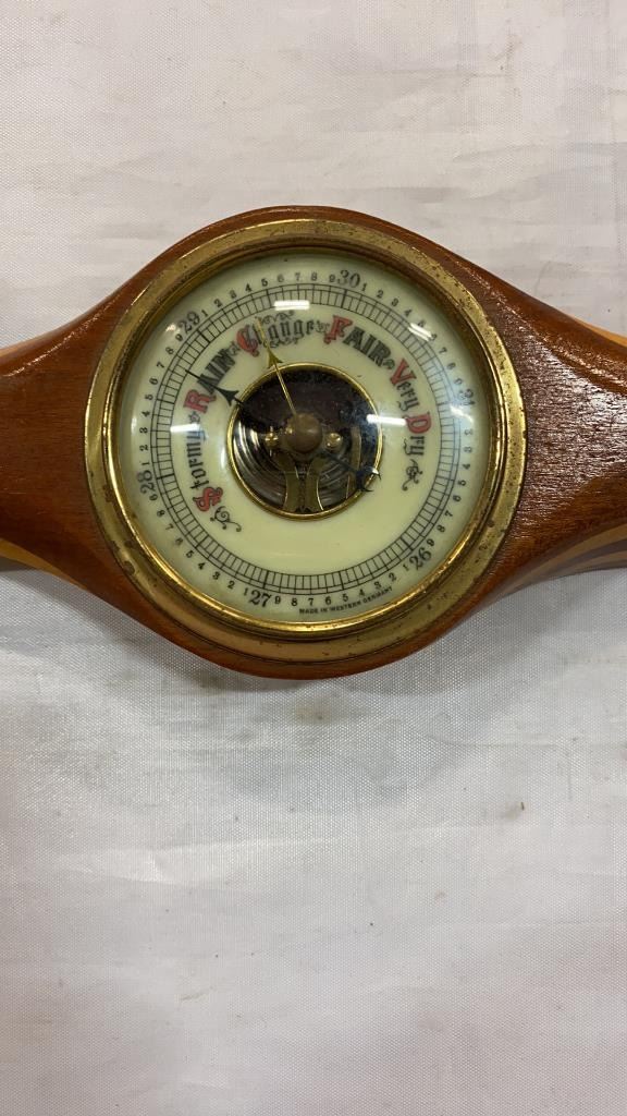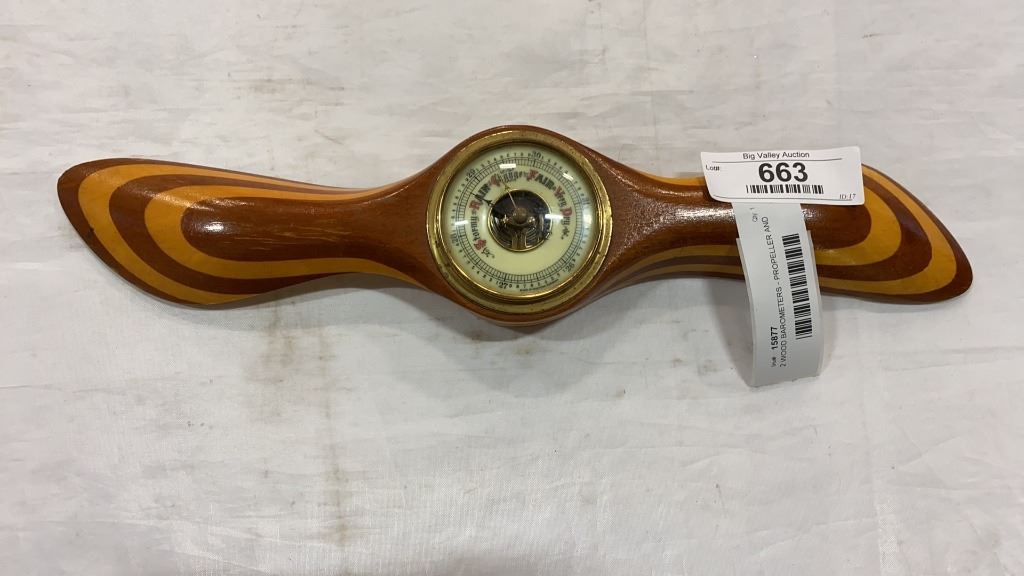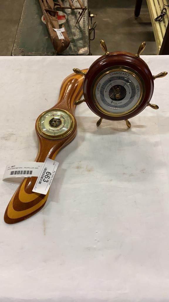 2 WOOD BAROMETERS - PROPELLER AND SHIP WHEEL STYLE
