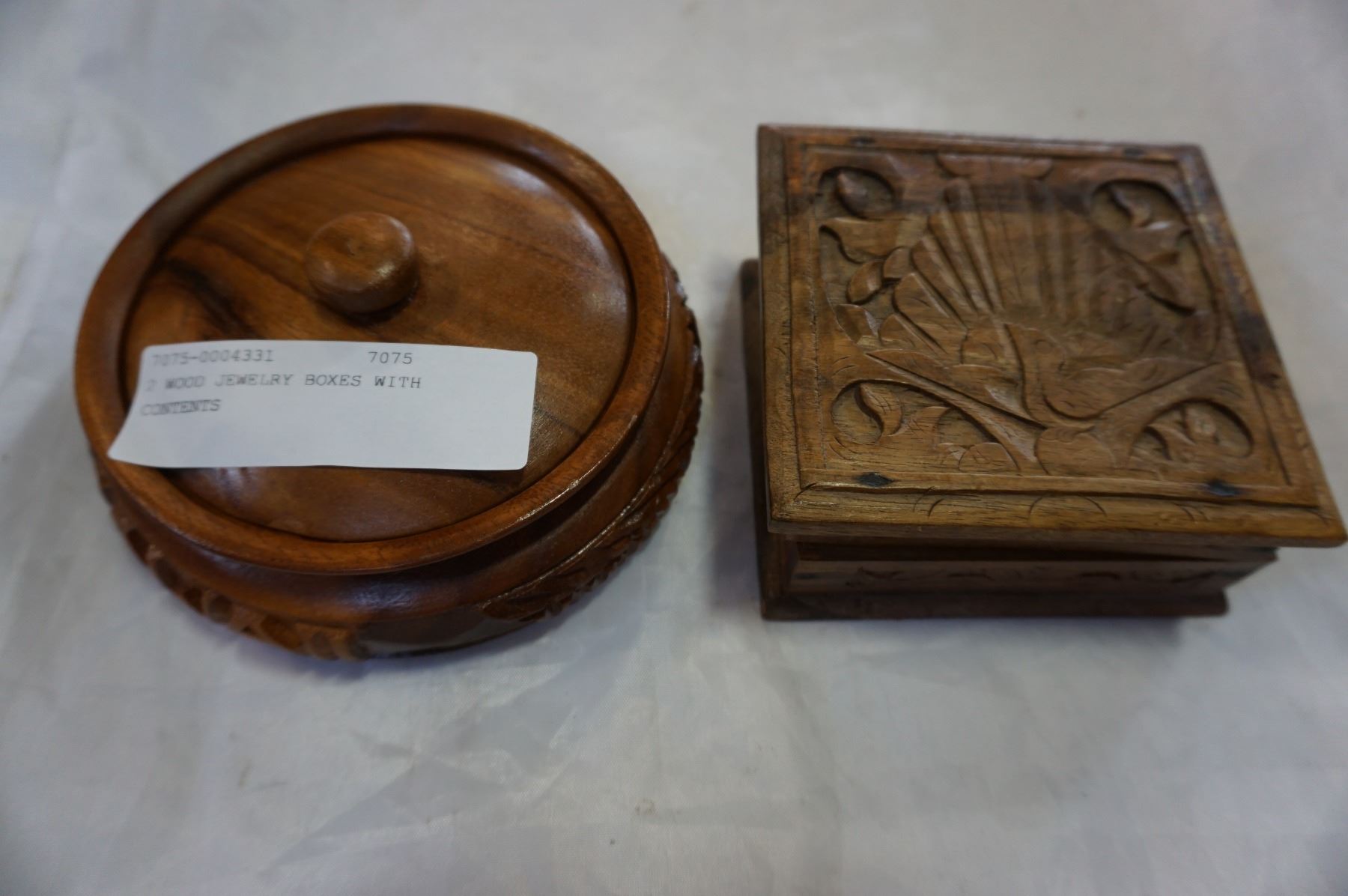 2 WOOD JEWELRY BOXES WITH CONTENTS