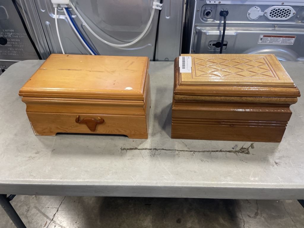 2 WOODEN JEWELLERY BOXES FULL OF ESTATE JEWELLERY
