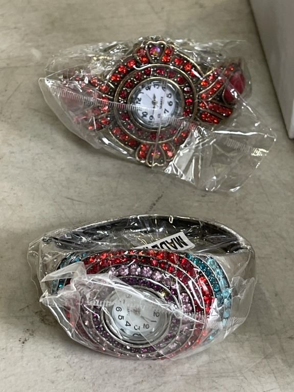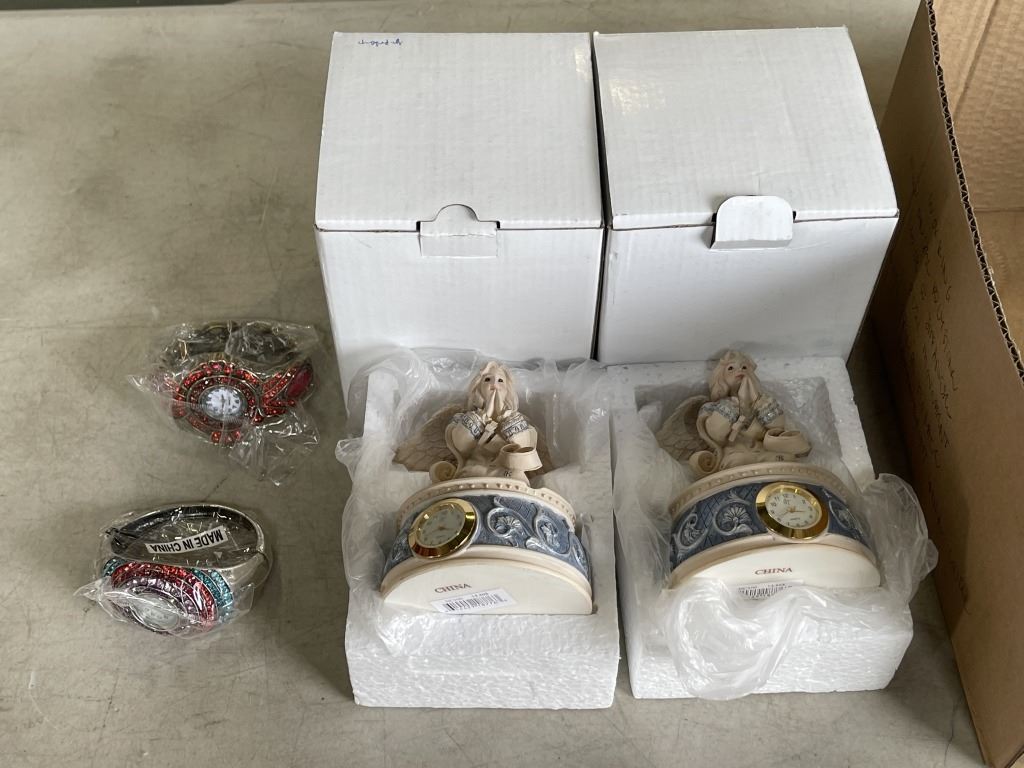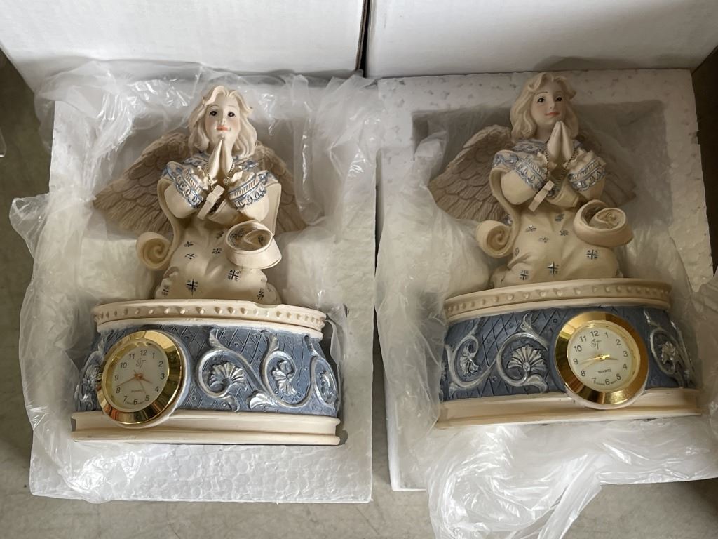 2 WORKING ANGEL POLYSTONE CLOCKS AND 2 ORKING STOP WATCHES W/ EXTRA BATTERIES
