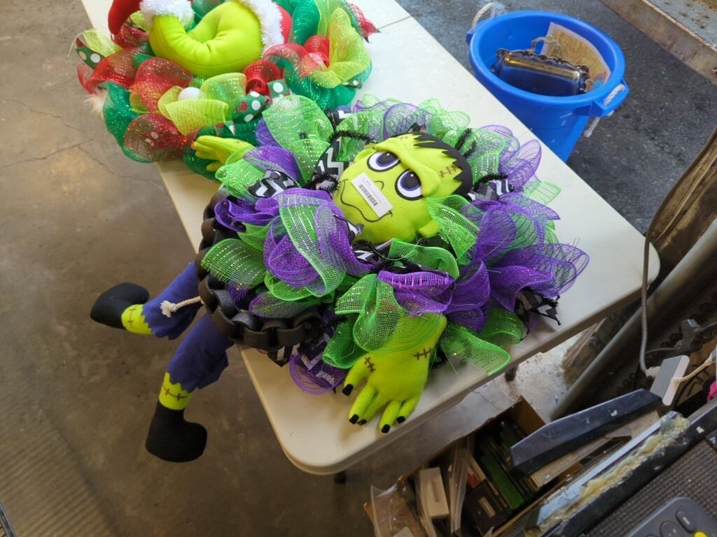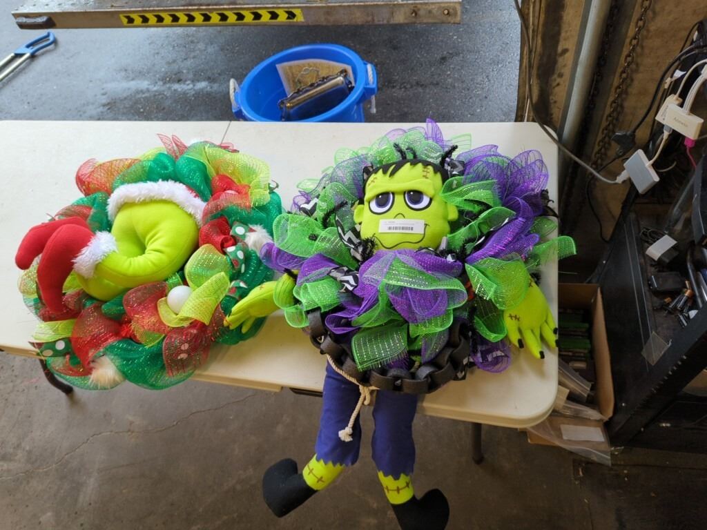 2 XMAS WREATHS FRANKENSTEIN AND GRINCH