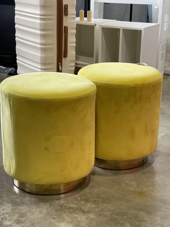 2 YELLOW OTTOMANS