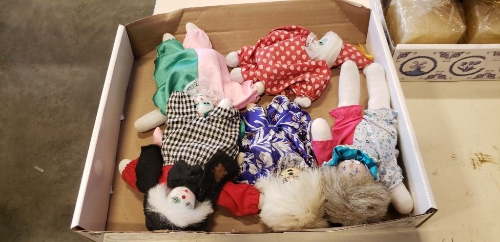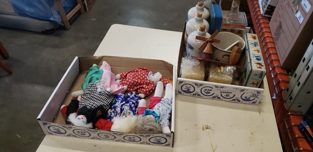 2 boxes of porcelain face dolls and collectibles