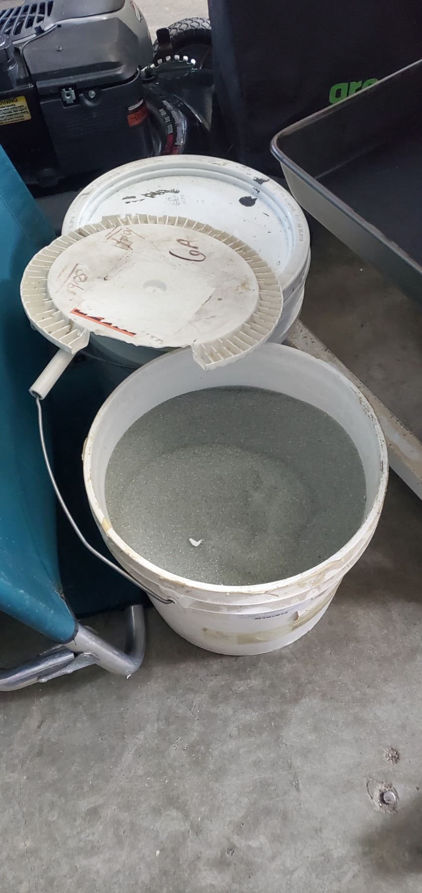 2 buckets of quality glass spheres and stainless steel cutter/ Polish