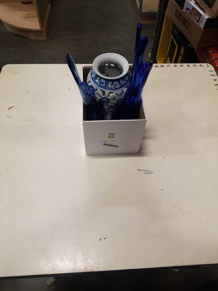 2 cobalt blue vases and eastern jar
