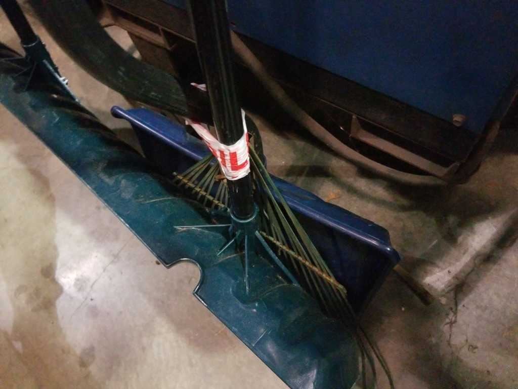 2 snow shovels and rake
