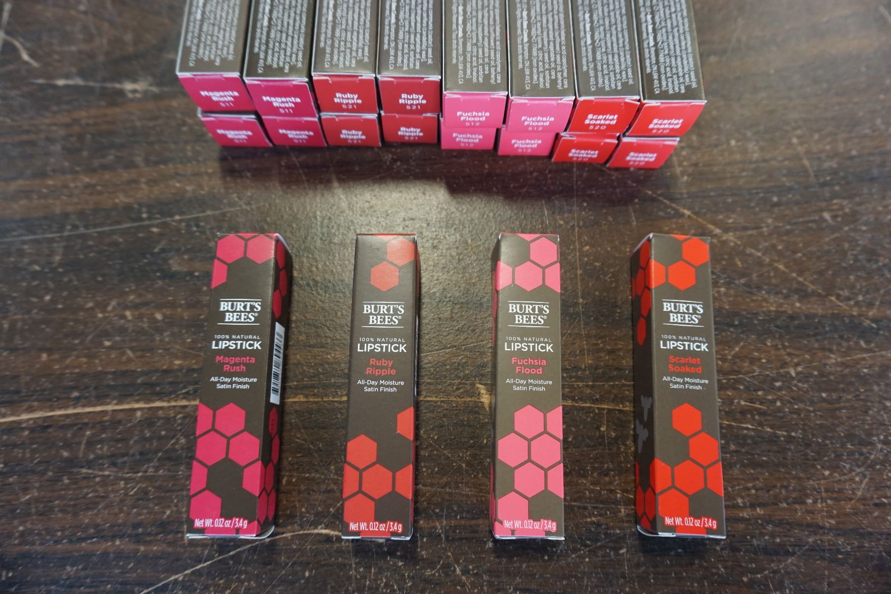 20 BRAND NEW BURTS BEES 100% NATURAL LIPSTICK, RETAIL $219.80 - 5 OF EACH COLOUR RUBY RIPPLE, MAGENT