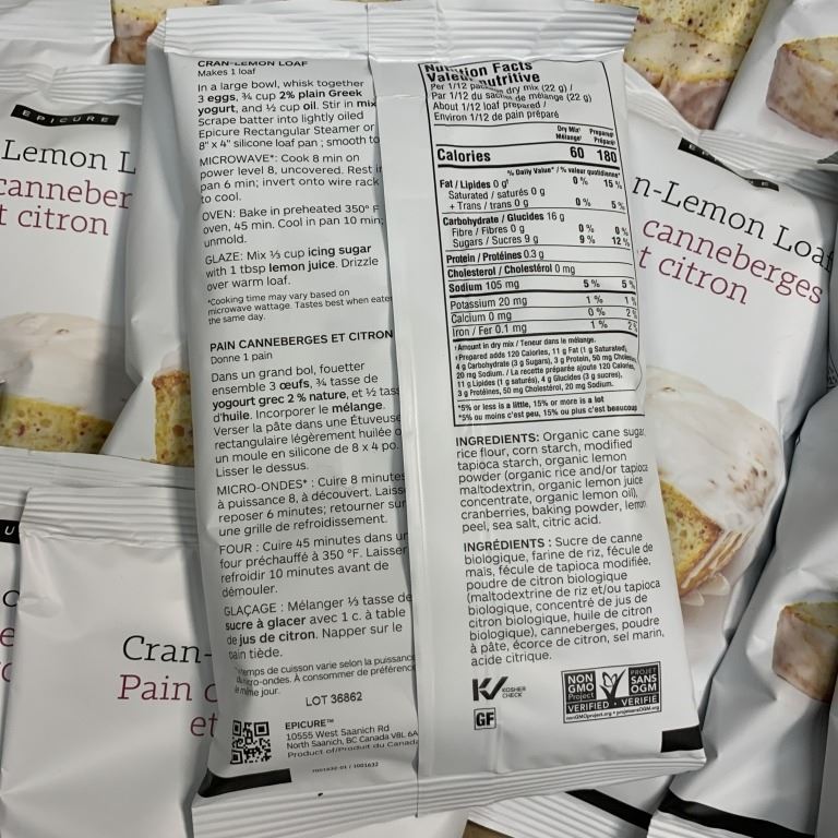 20 PACKETS OF NEW SEALED CRAN LEMON LOAF MIXES 264 G PER BAG RETAIL $260