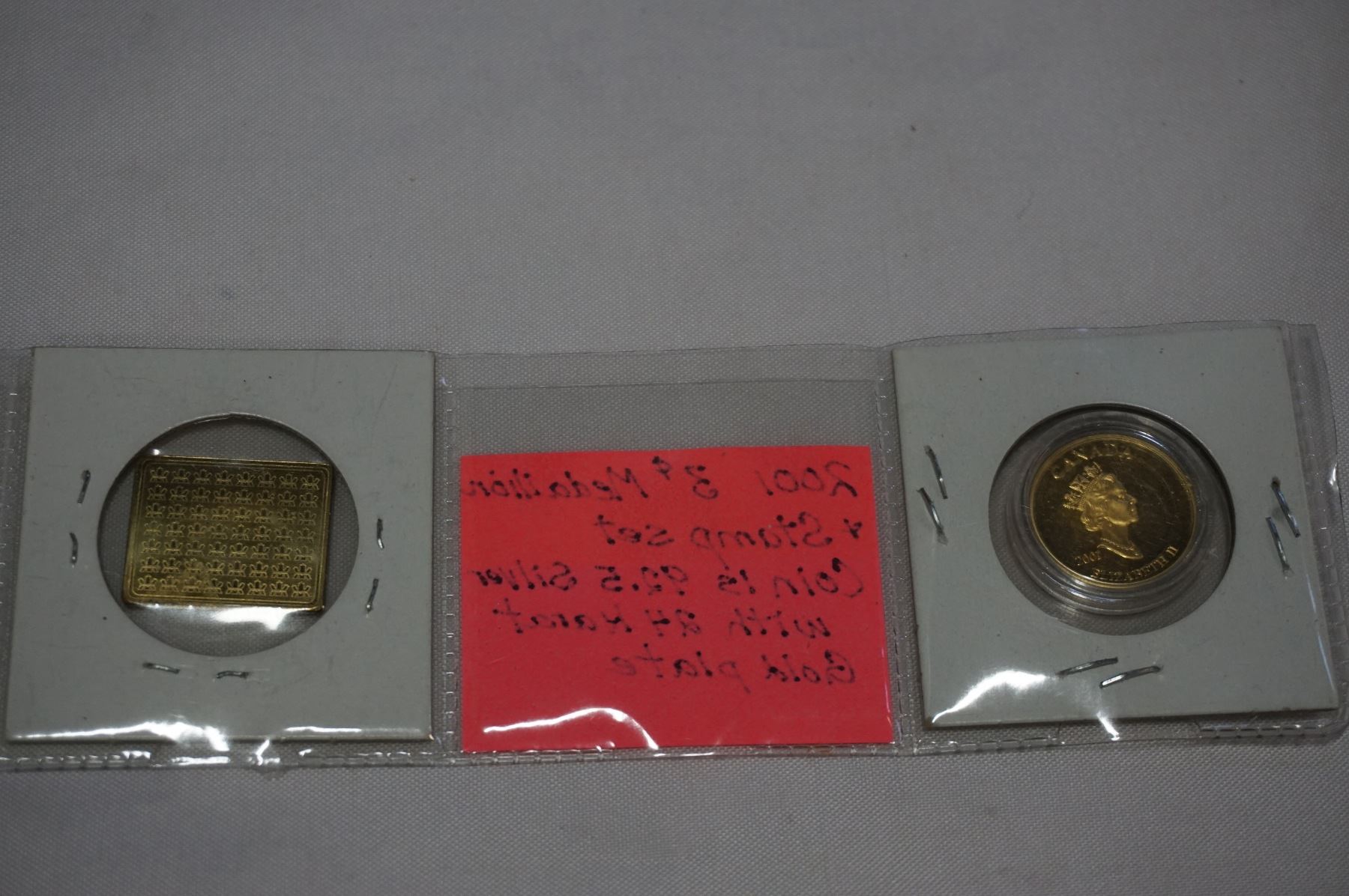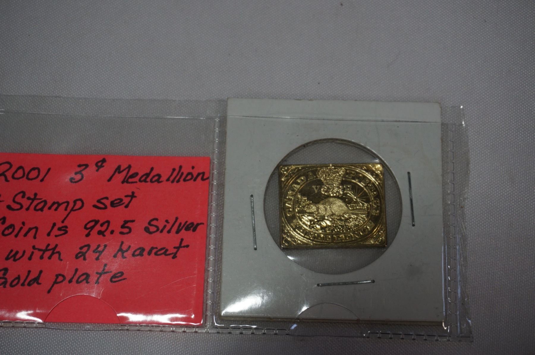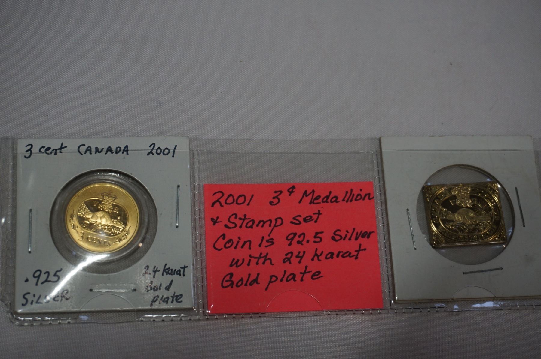 2001 3c MEDALLION AND STAMP SET, COIN IS 925 SILVER WITH 24K GOLD PLATE
