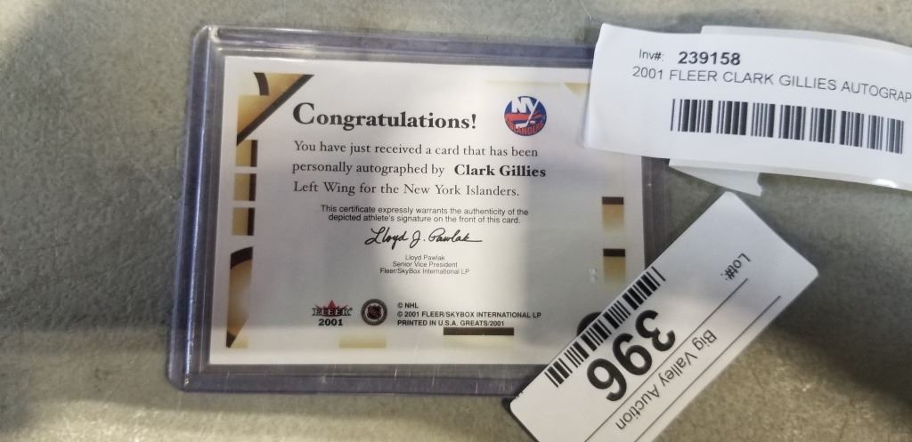 2001 FLEER CLARK GILLIES AUTOGRAPHED CARD