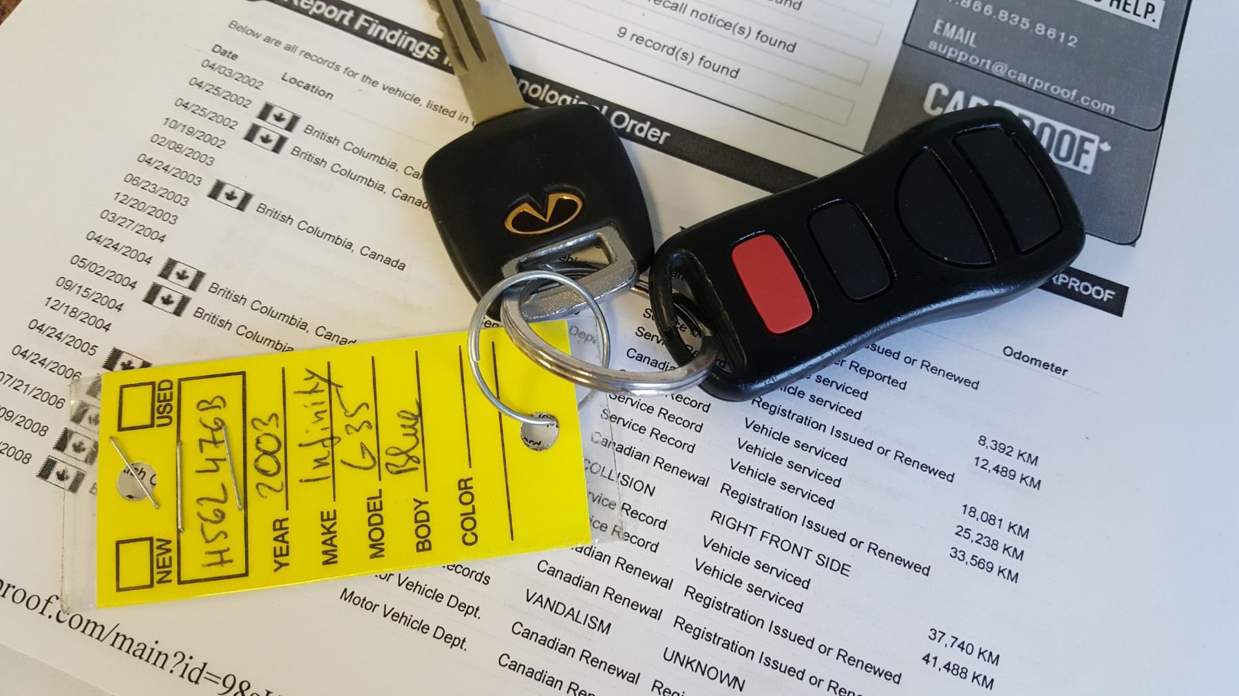 2003 INFINITY G35, 4 DOOR SEDAN, 287009KM, AUTOMATIC, LEATHER INTERIOR, SUN ROOF, WITH KEY FOB AND REGISTRATION