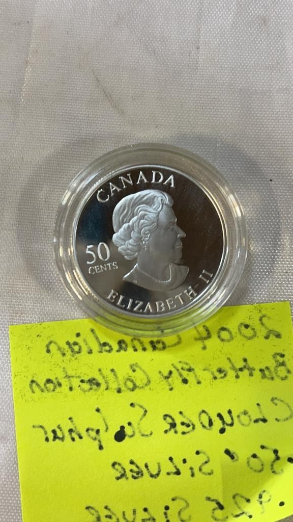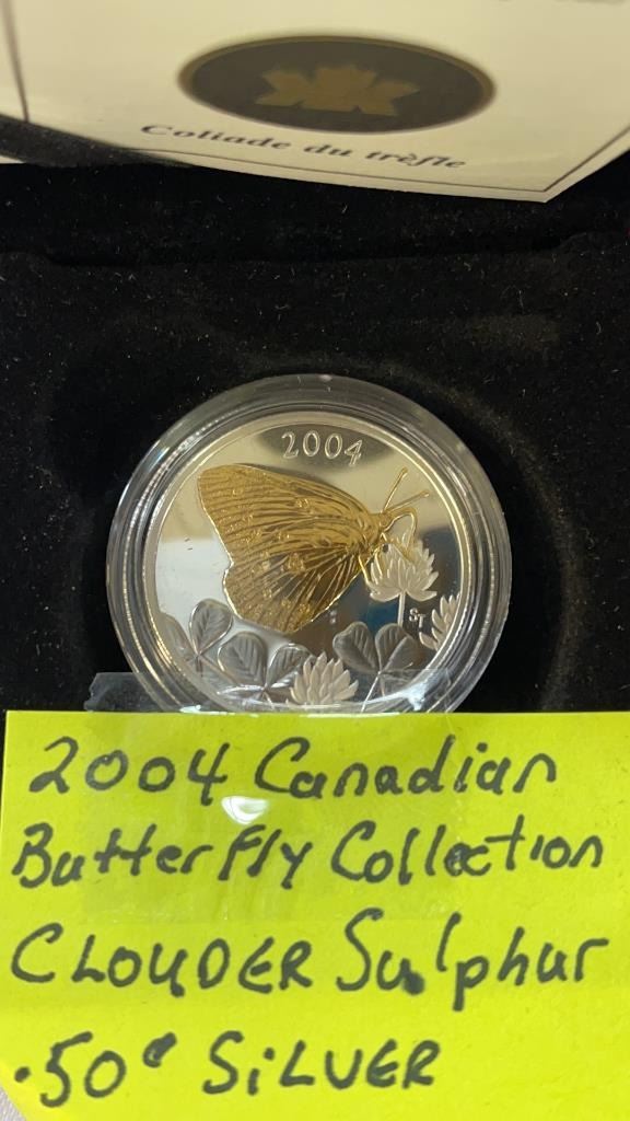 2004 CANADIAN BUTTERFLY COLLECTION "CLOUDER SULPHUR" 50 CENT COIN .925 SILVER