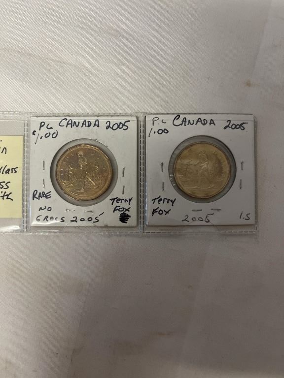 2005 CANADIAN TERRY FOX DOLLARS - RARE NO GRASS AND REGULAR W/ GRASS