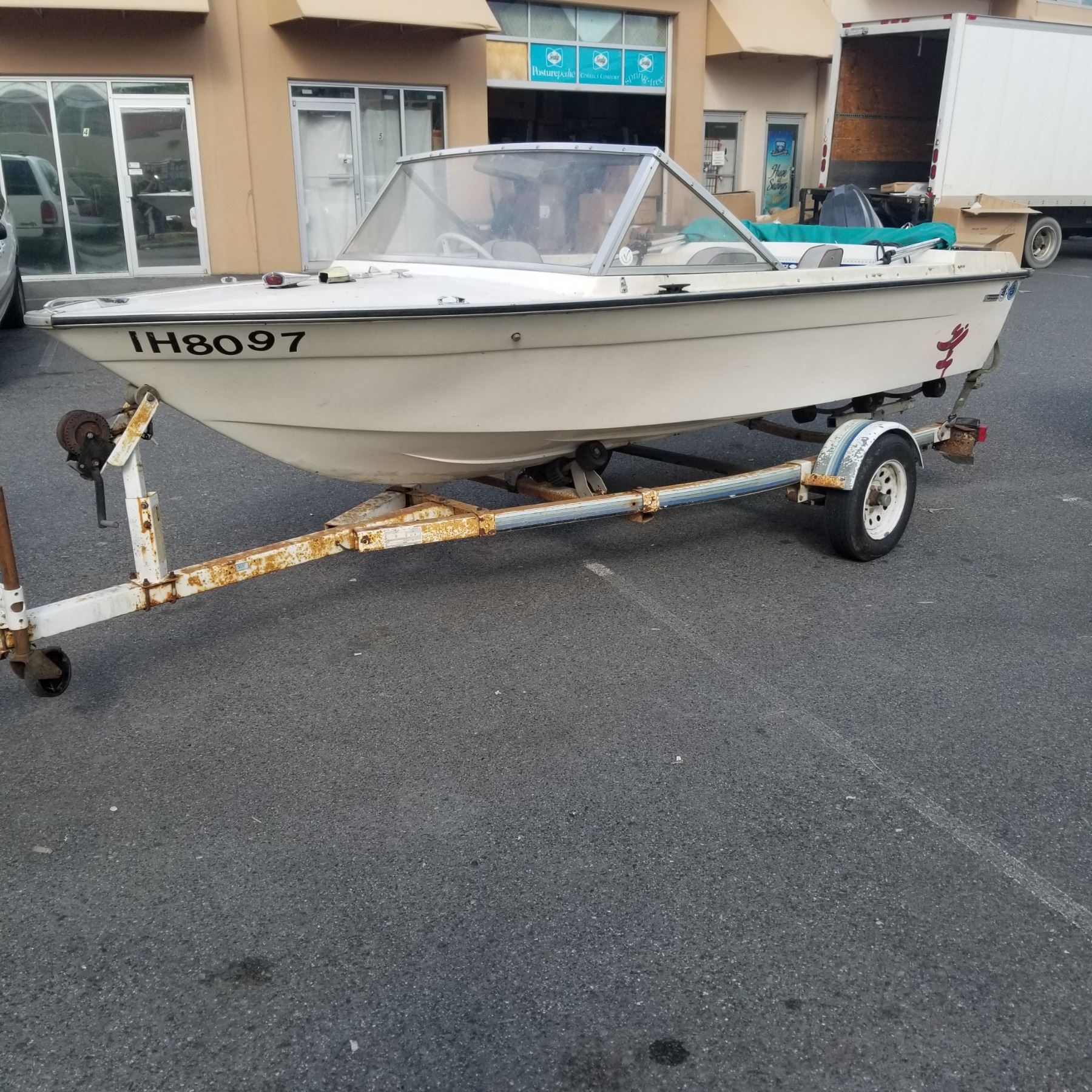 2007 U-BILT BOAT TRAILER, SINGLE AXLE, 19 FOOT TRAILER INCLUDES 1984 ANCHOR FIBERGLASS HULL BOAT, MA