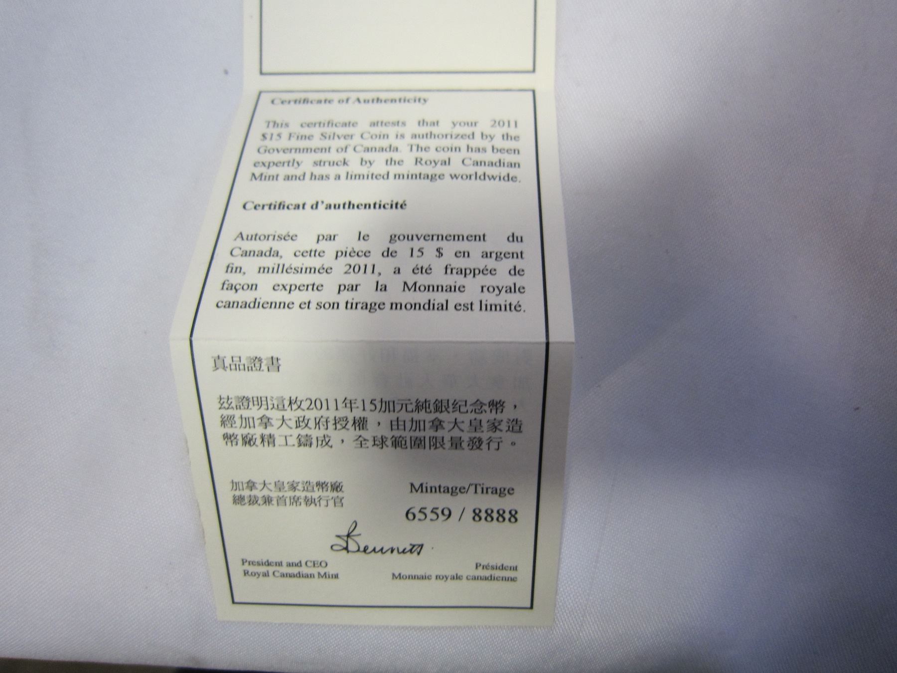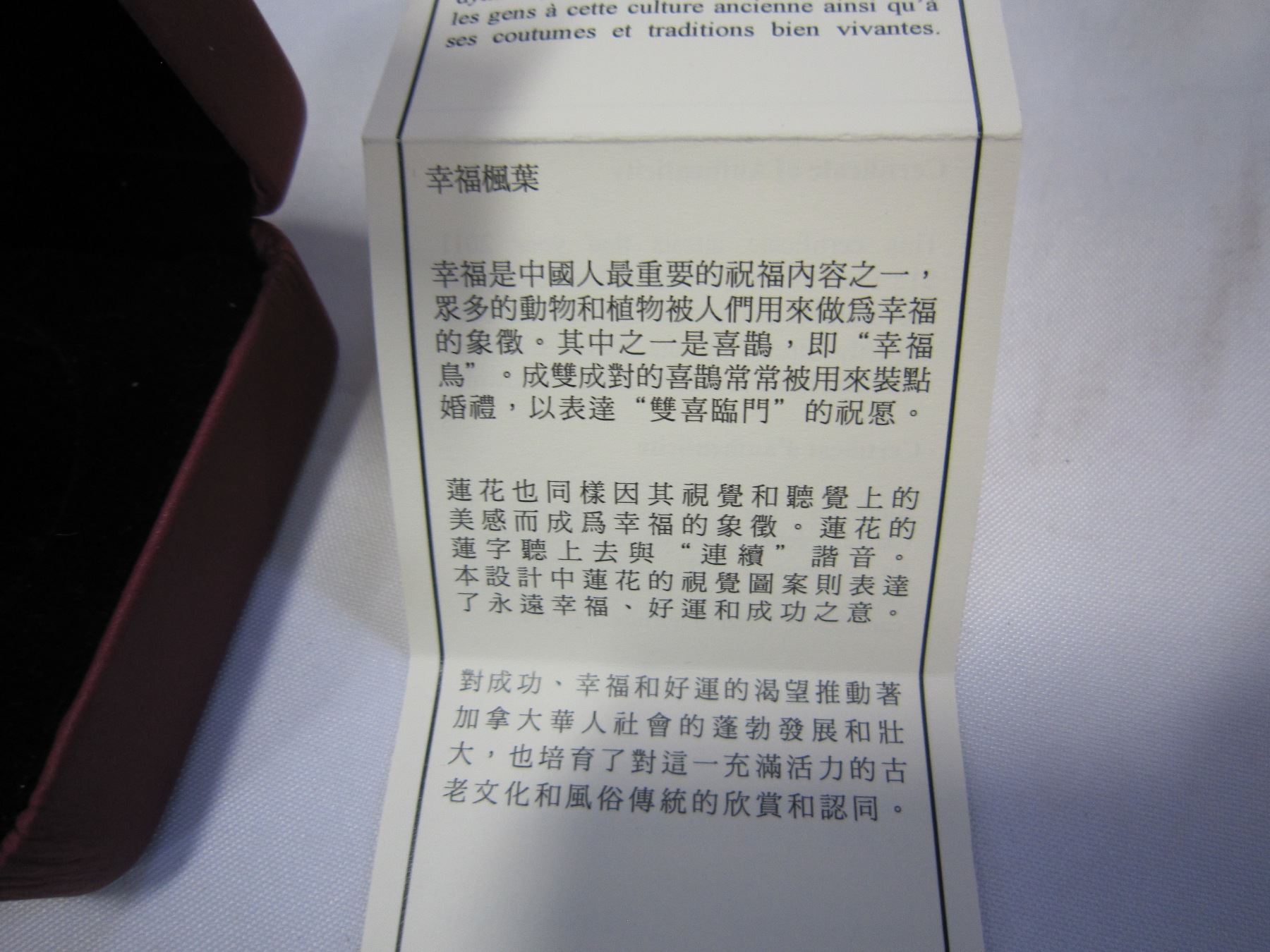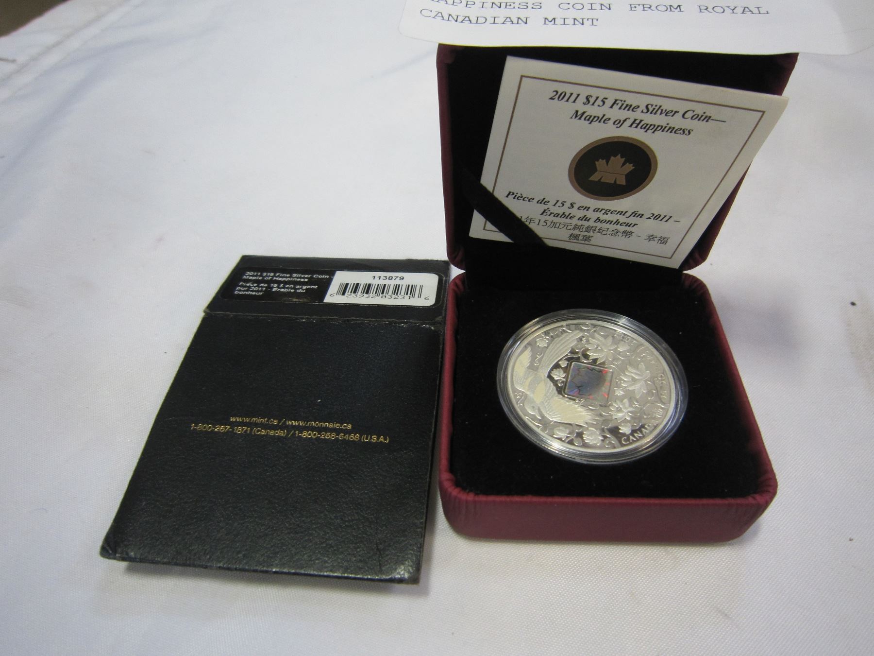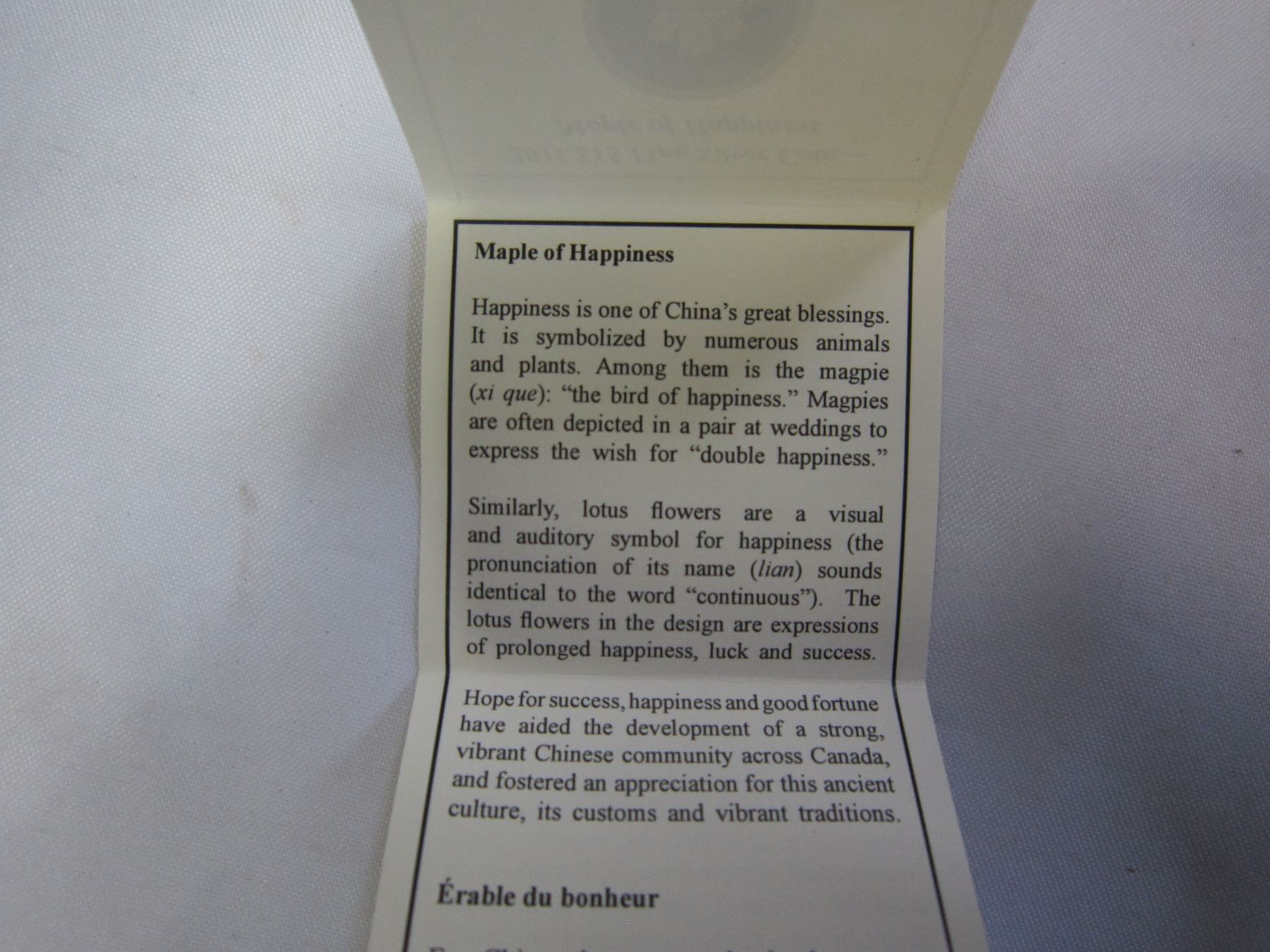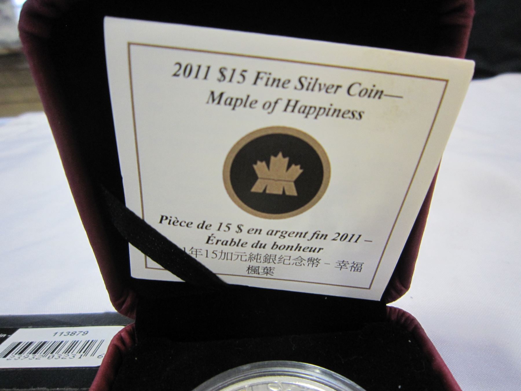 2011 FINE SILVER $15 MAPLE OF HAPPINESS COIN FROM ROYAL CANADIAN MINT