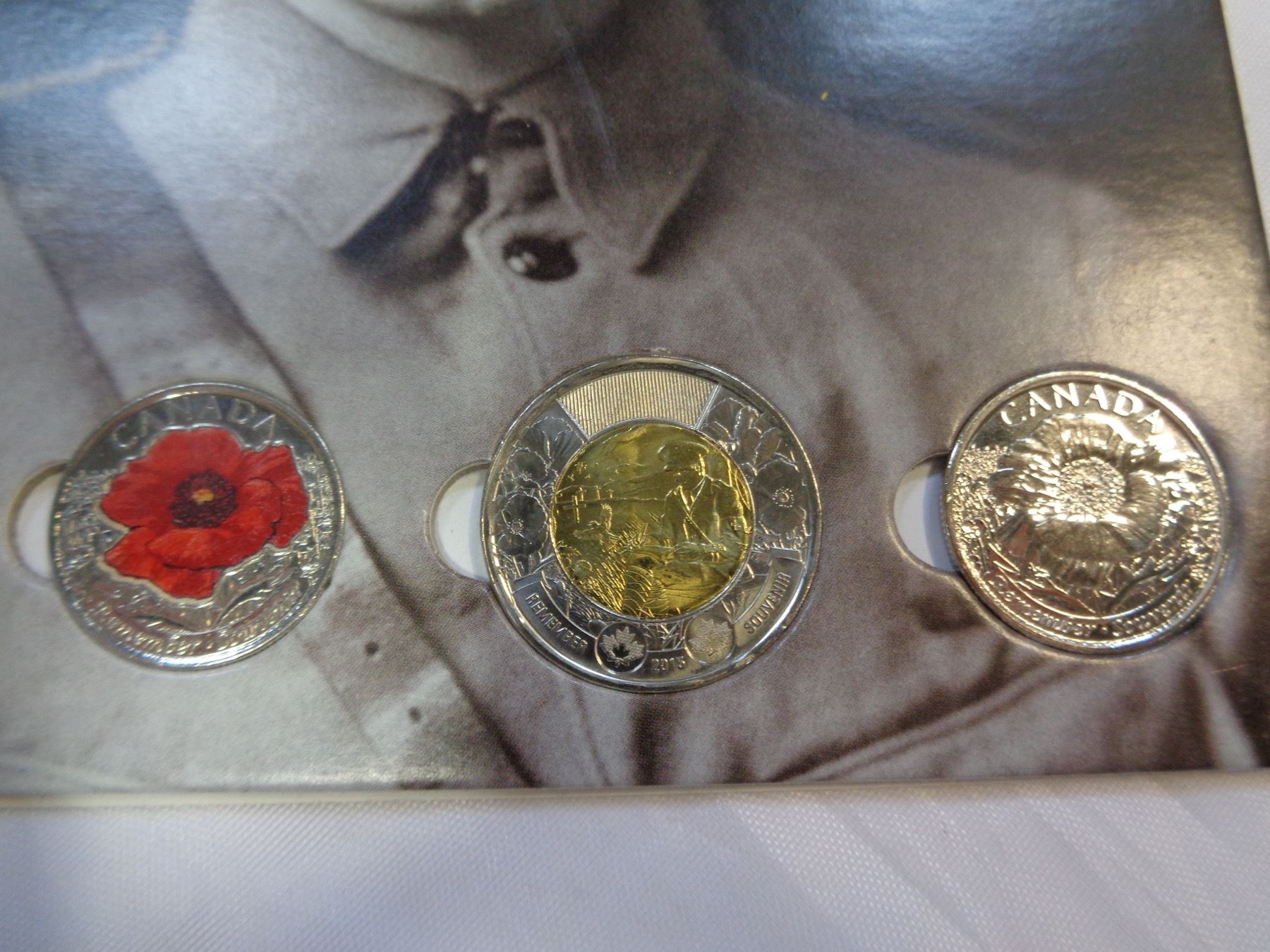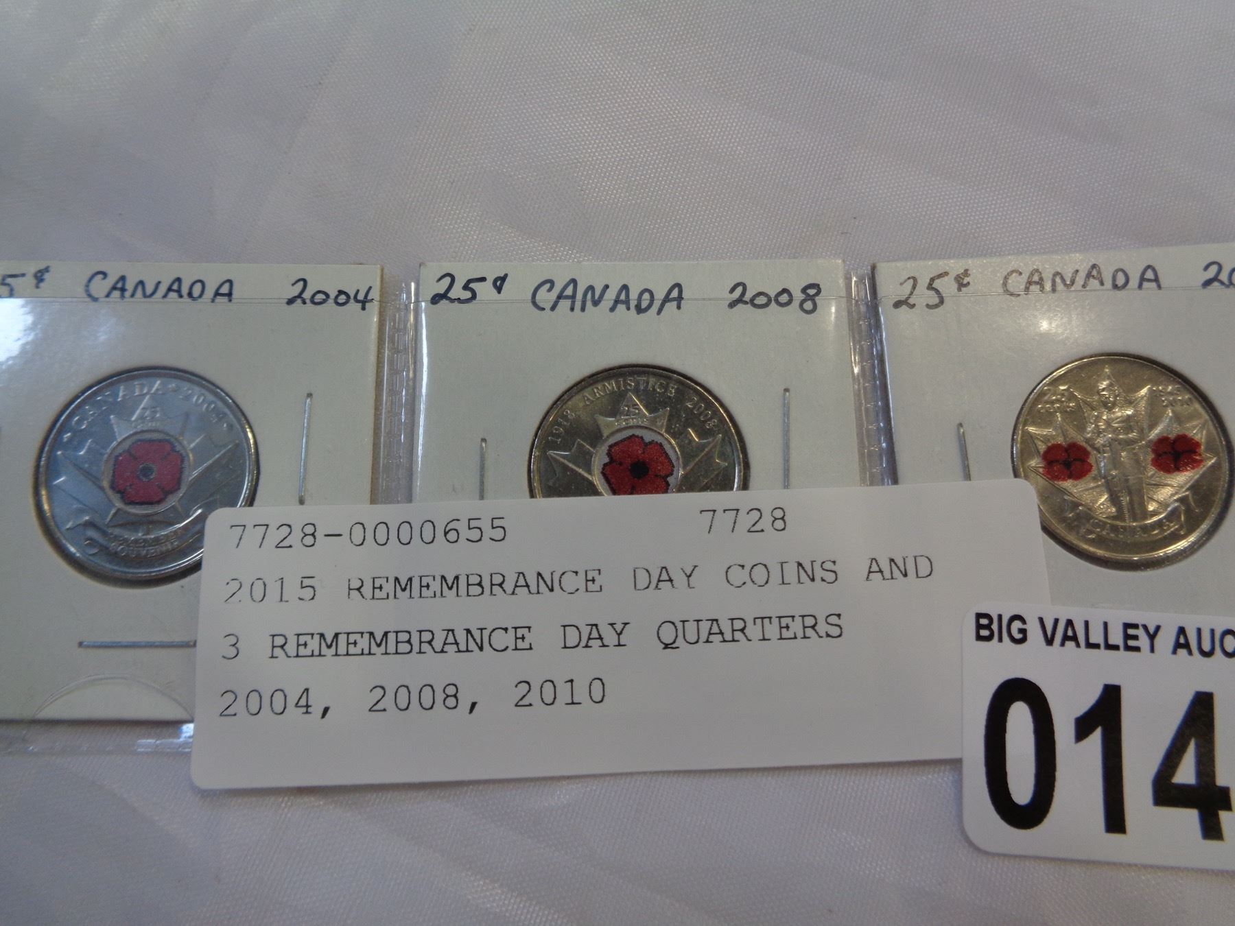 2015 REMEMBRANCE DAY COINS AND 3 REMEMBRANCE DAY QUARTERS 2004, 2008, 2010