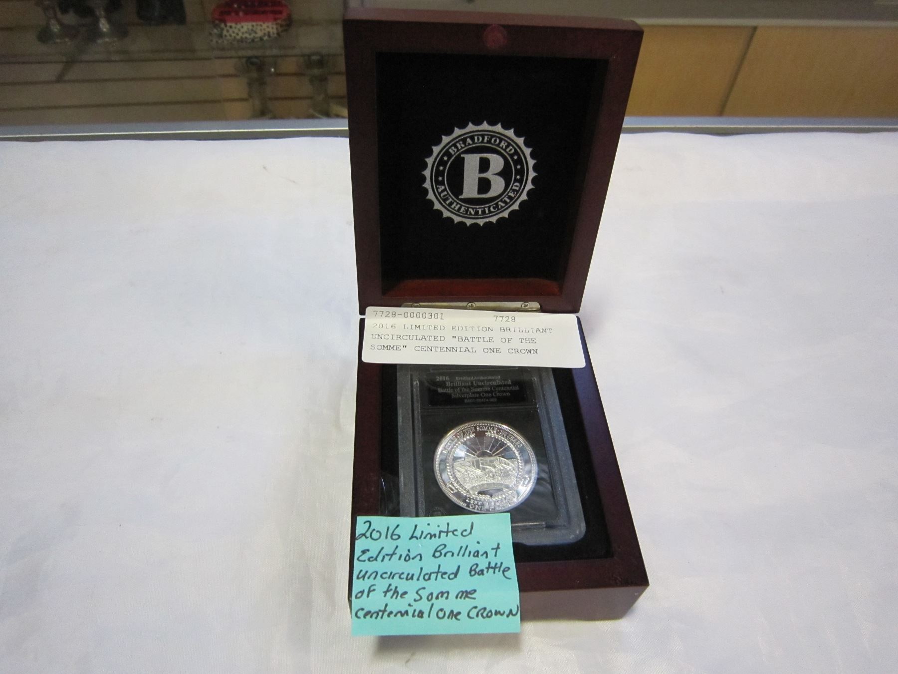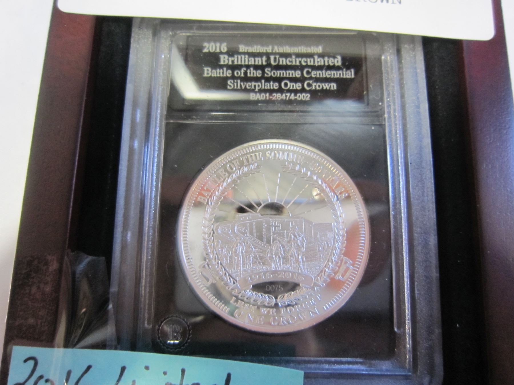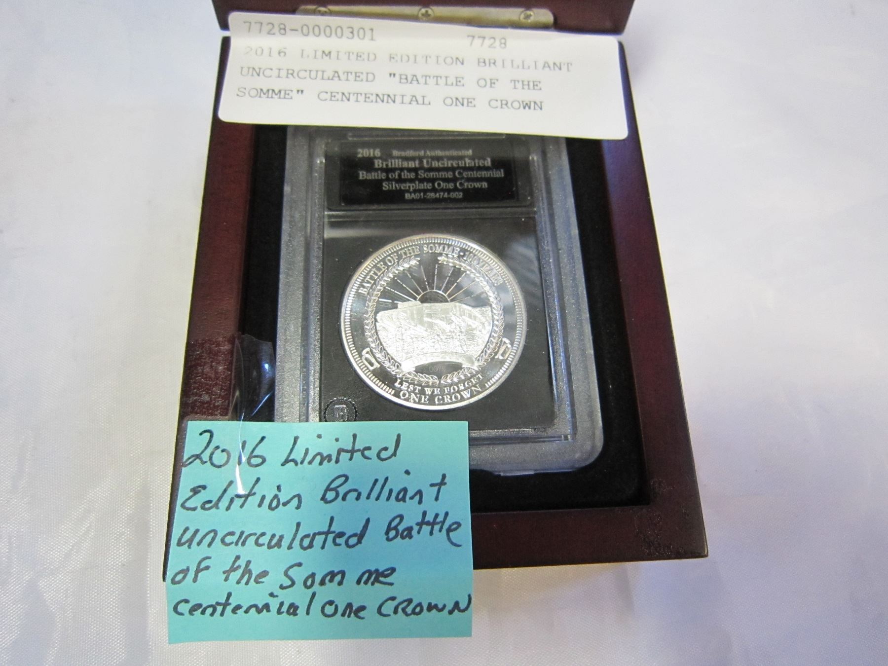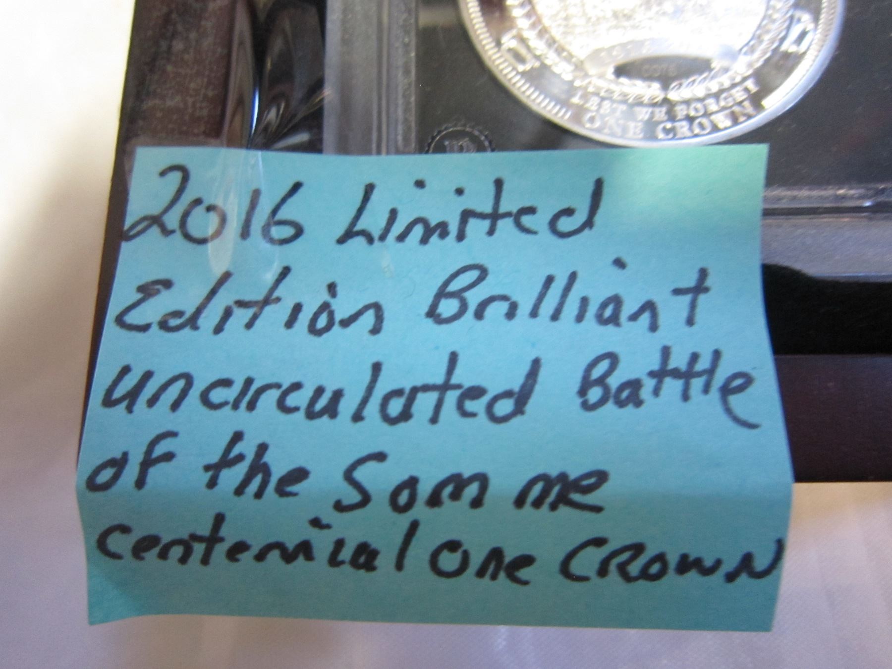 2016 LIMITED EDITION BRILLIANT UNCIRCULATED "BATTLE OF THE SOMME" CENTENNIAL ONE CROWN COIN - WOOD BOX