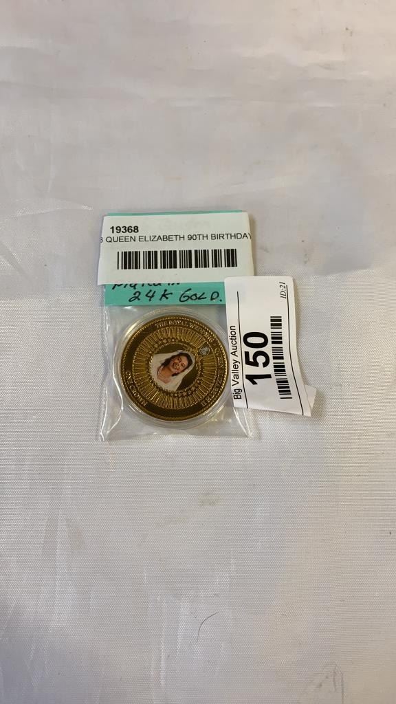 2016 QUEEN ELIZABETH 90TH BIRTHDAY IMPERIAL CROWN COLLECTION PLATED IN 24K GOLD - ONLY 1926 COINS ISSUED IN NORTH AMERICA