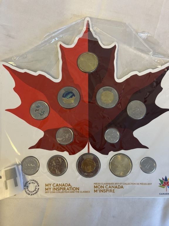 2017 CANADIAN MINT 'MY CANADA, MY INSPIRATION' COIN SET AND 1982 CANADIAN MINT COIN SET IN ORIGINAL BOX AND COIN HOLDER