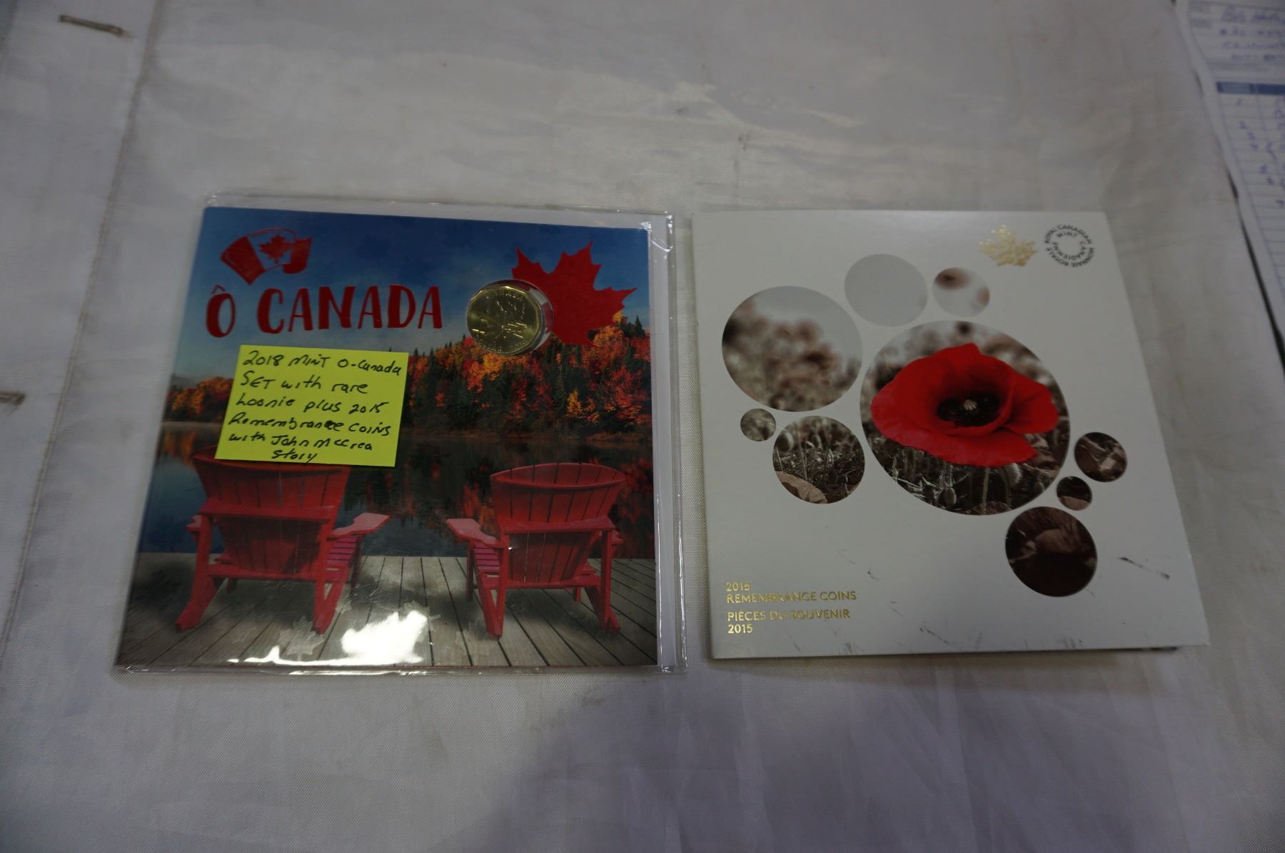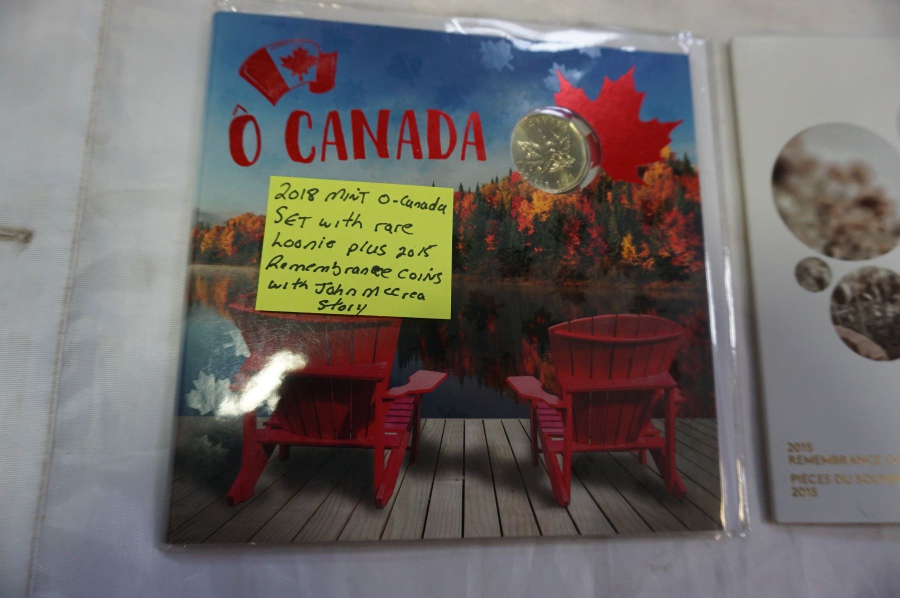 2018 MINT O CANADA COIN SET WITH RARE LOONIE PLUS 2015 REMEMBRANCE COINS WITH STORY OF JOHN MCCRAE