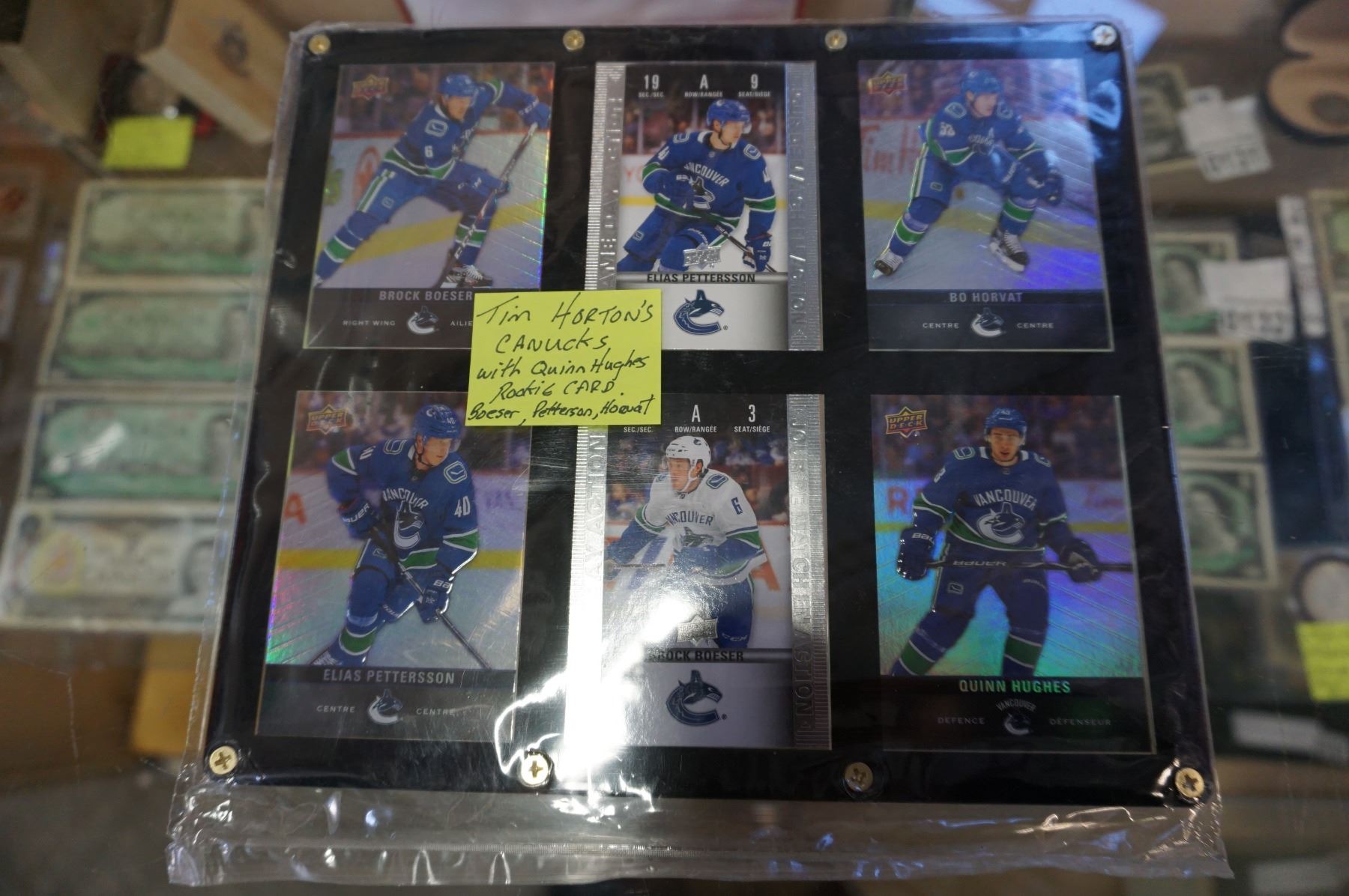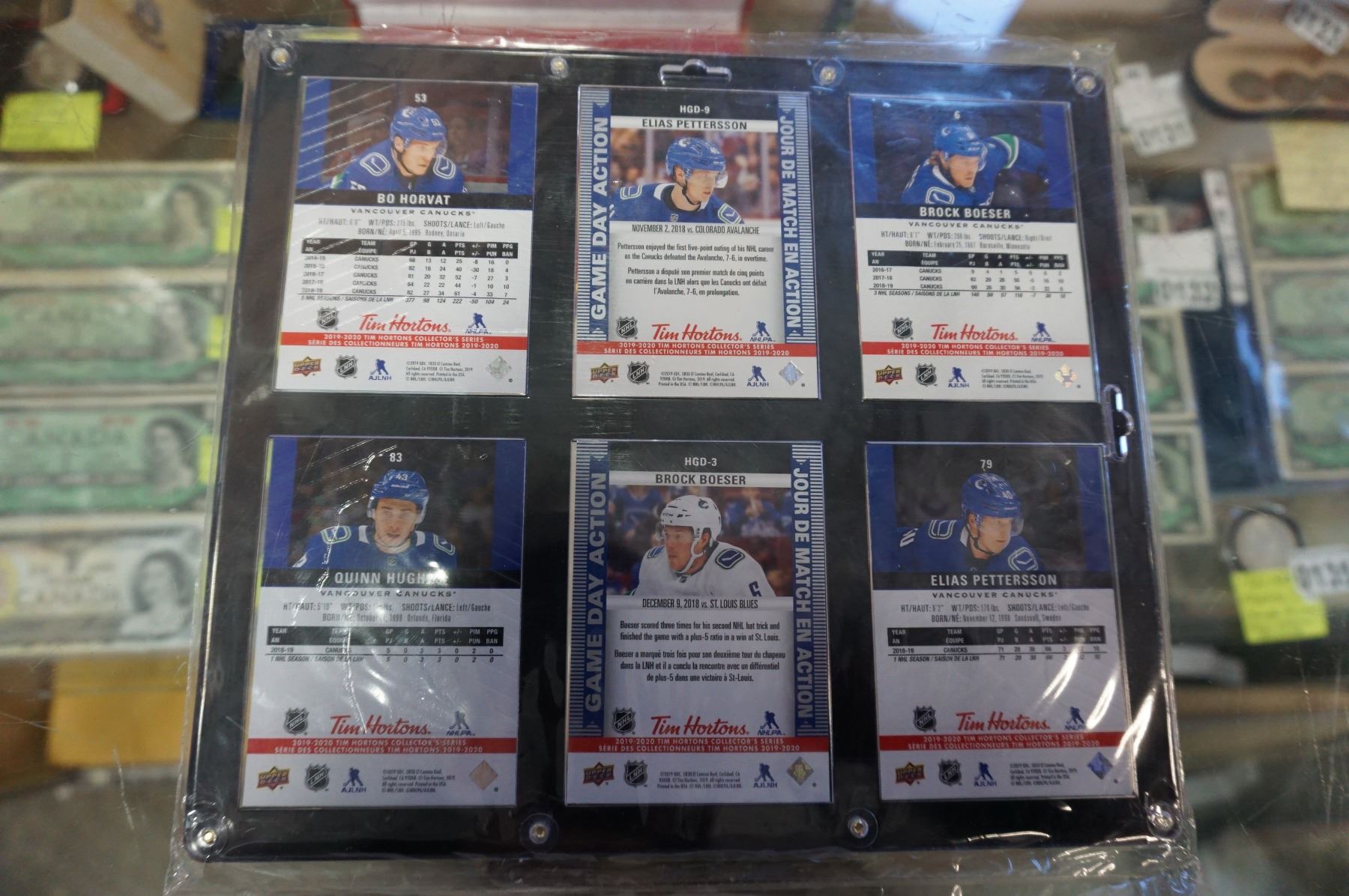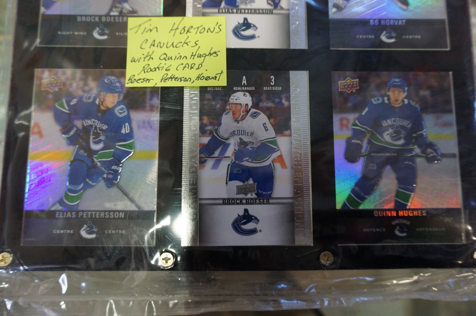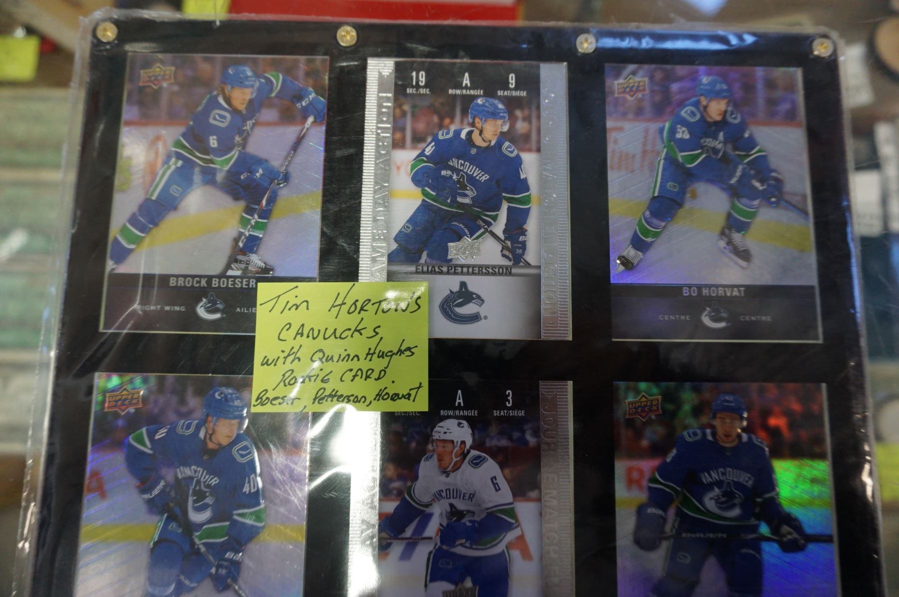 2019 TIM HORTONS CANUCKS QUINN HUGHES ROOKIE CARD BOESER, PETTERSON, HORVAT