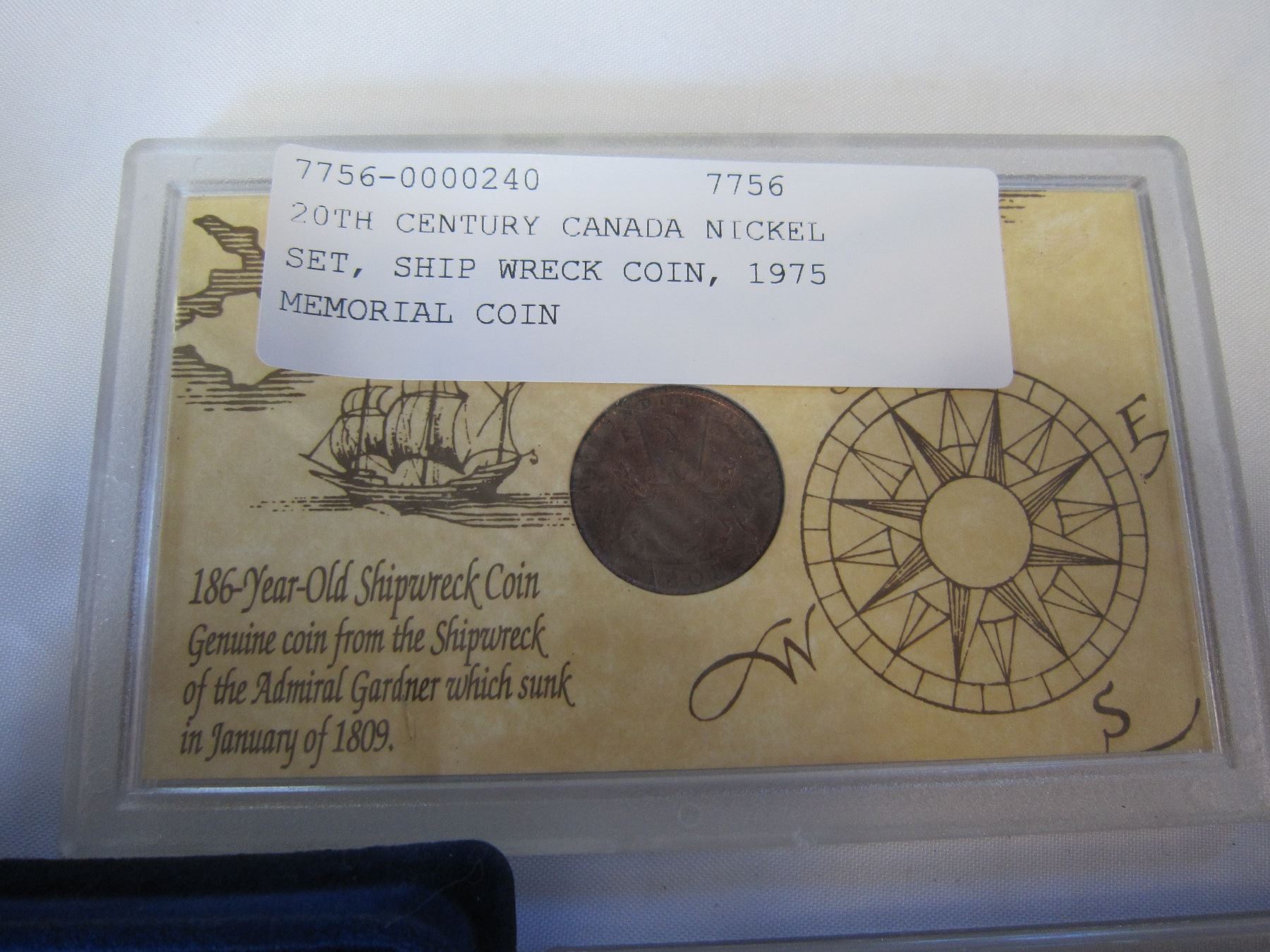 20TH CENTURY CANADA NICKEL SET, SHIP WRECK COIN, 1975 MEMORIAL COIN