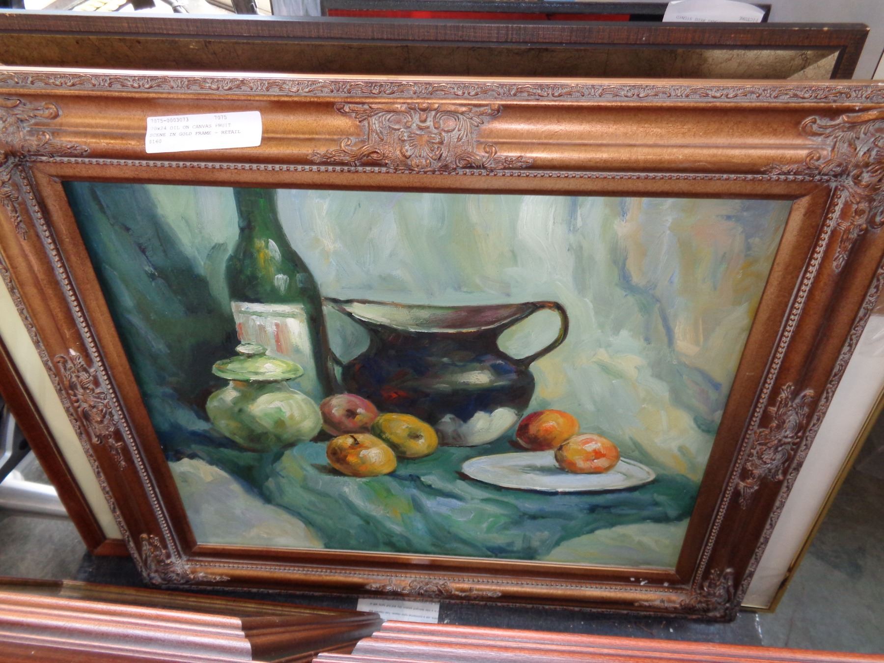20x24 OIL ON CANVAS FRUIT SCENE IN GOLD FRAME - RETAIL $160
